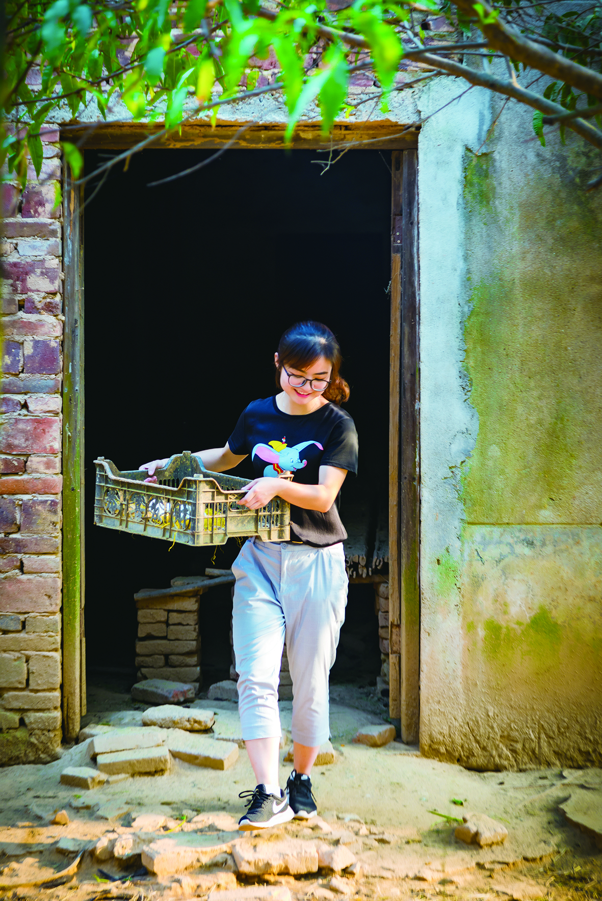 2019年,渌口镇副镇长(选调生)夏竞茜在晓岭村参与养殖产业。