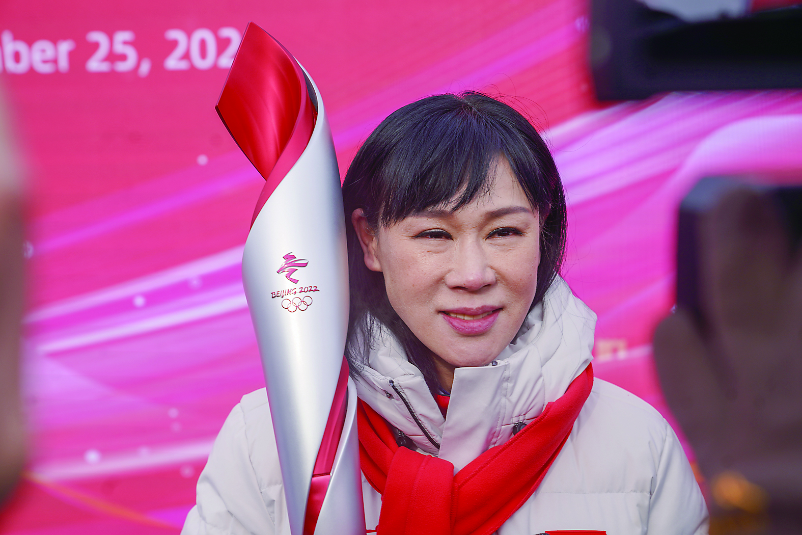 12月25日,北京2022年冬奥会火炬展示活动在吉林省吉林市北大湖滑雪场举行。本场活动结束后,冬奥火炬还将陆续在长春、通化、长白山进行展示。图为速滑世界冠军叶乔波当日在活动现场手持火炬进行展示。