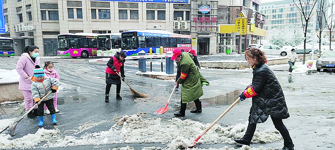 党员干部齐上阵 扫雪铲冰保安全