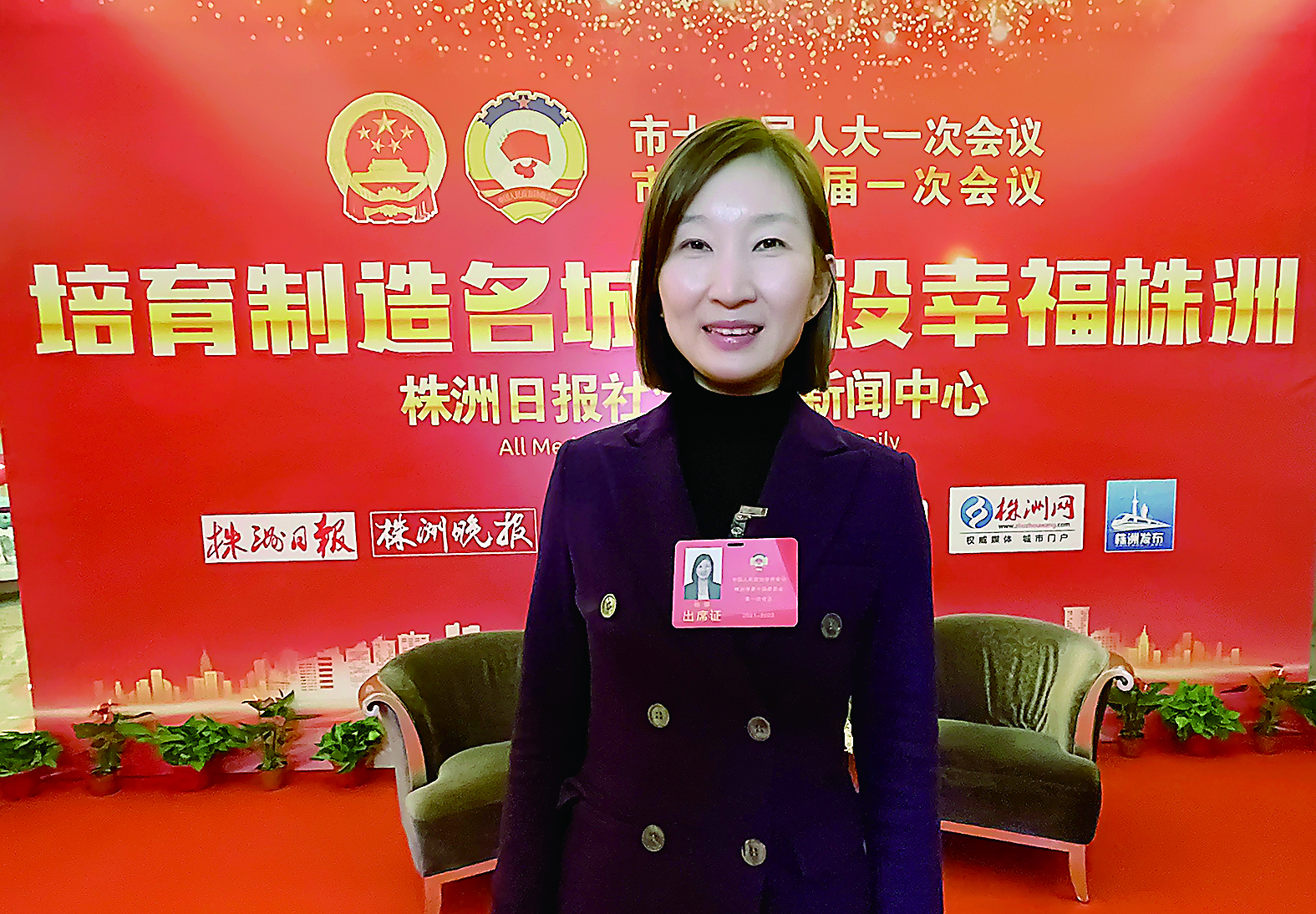 市政协委员、湖南铁路科技职业技术学院招生就业处副处长钱娜。 株洲日报·掌上株洲记者/谭浩瀚 摄