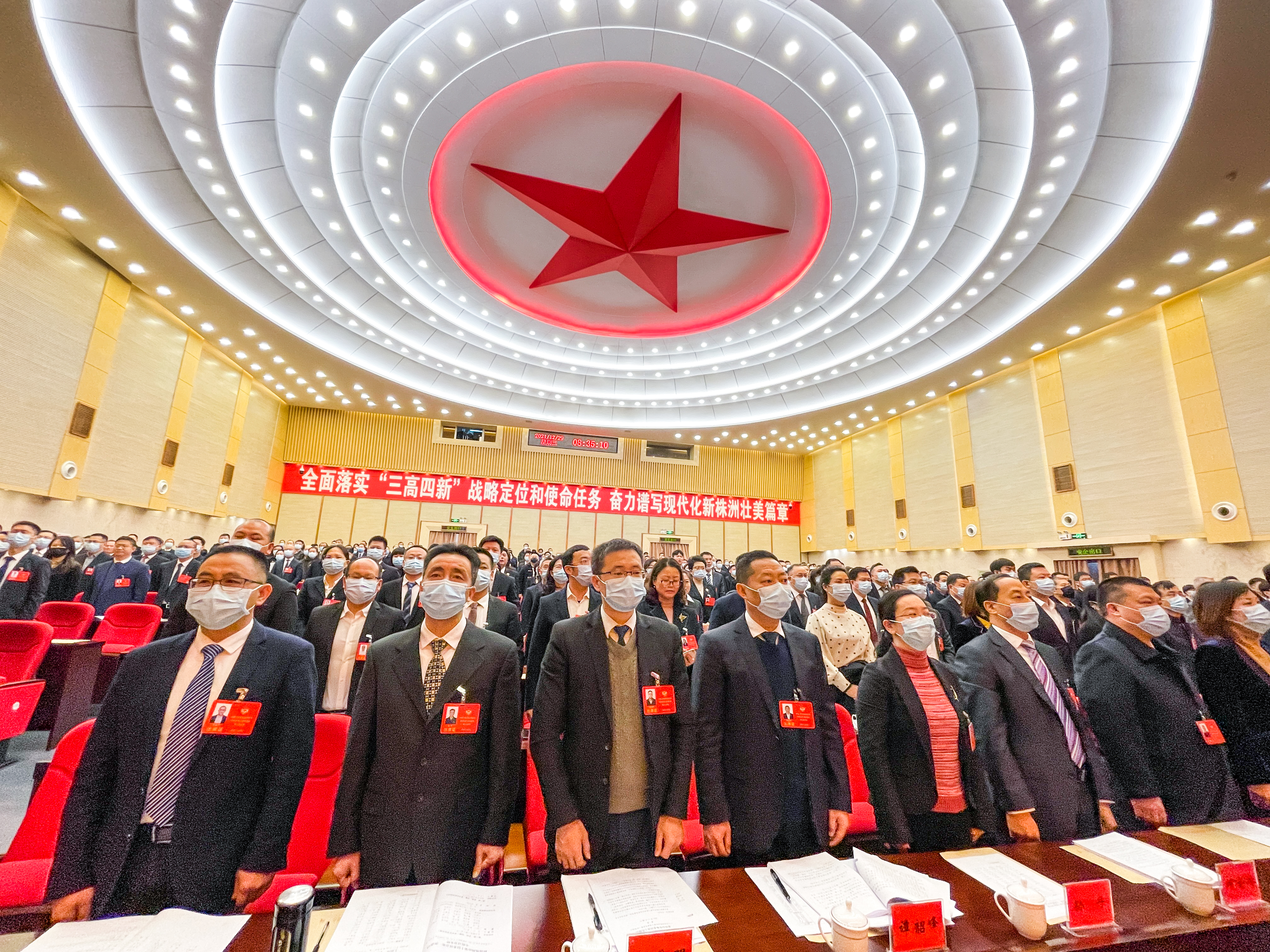 12月29日,政协株洲市第十届委员会第一次会议在市委礼堂隆重开幕。全体人员起立,奏唱国歌。