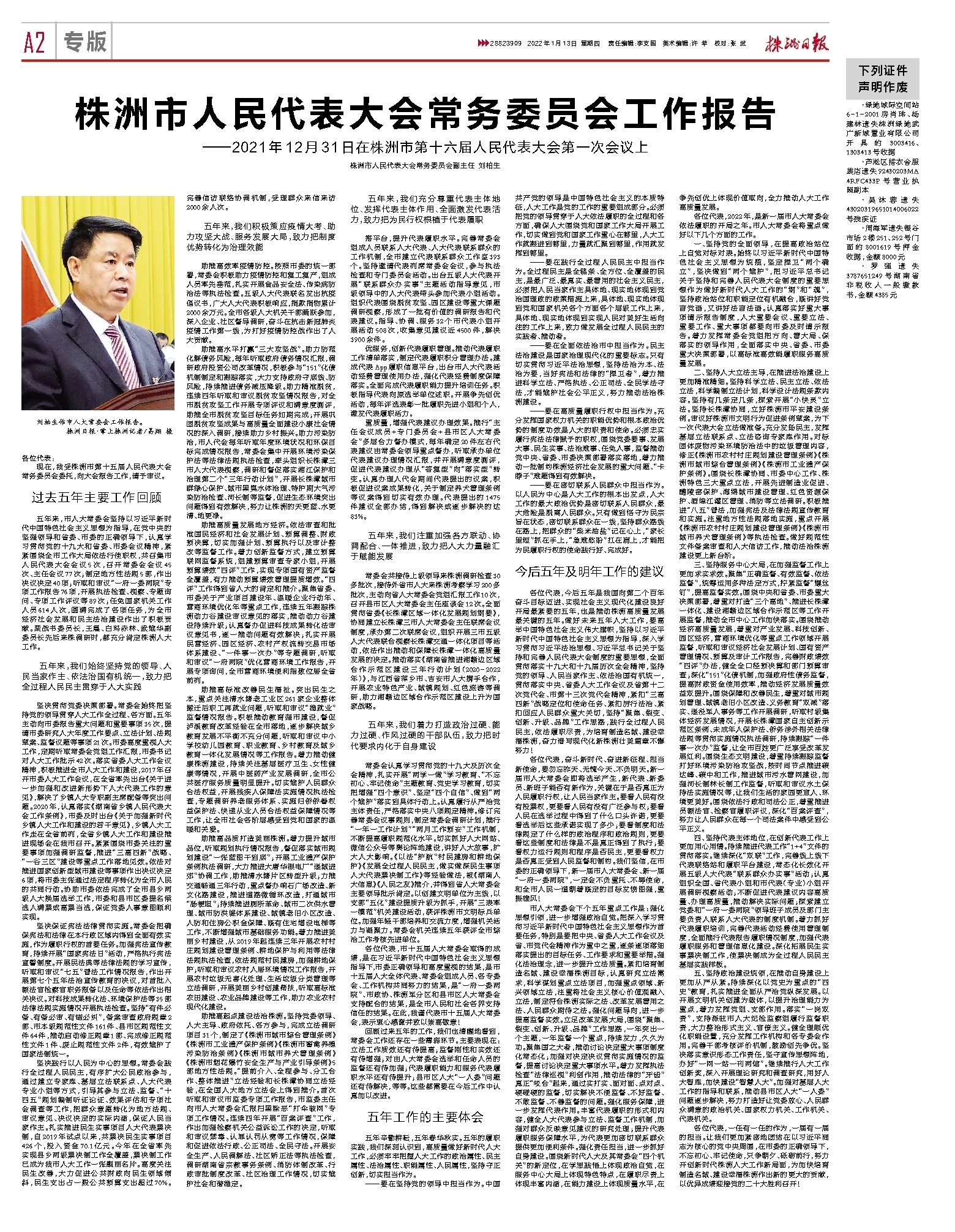 2022年01月13日《株洲日报》