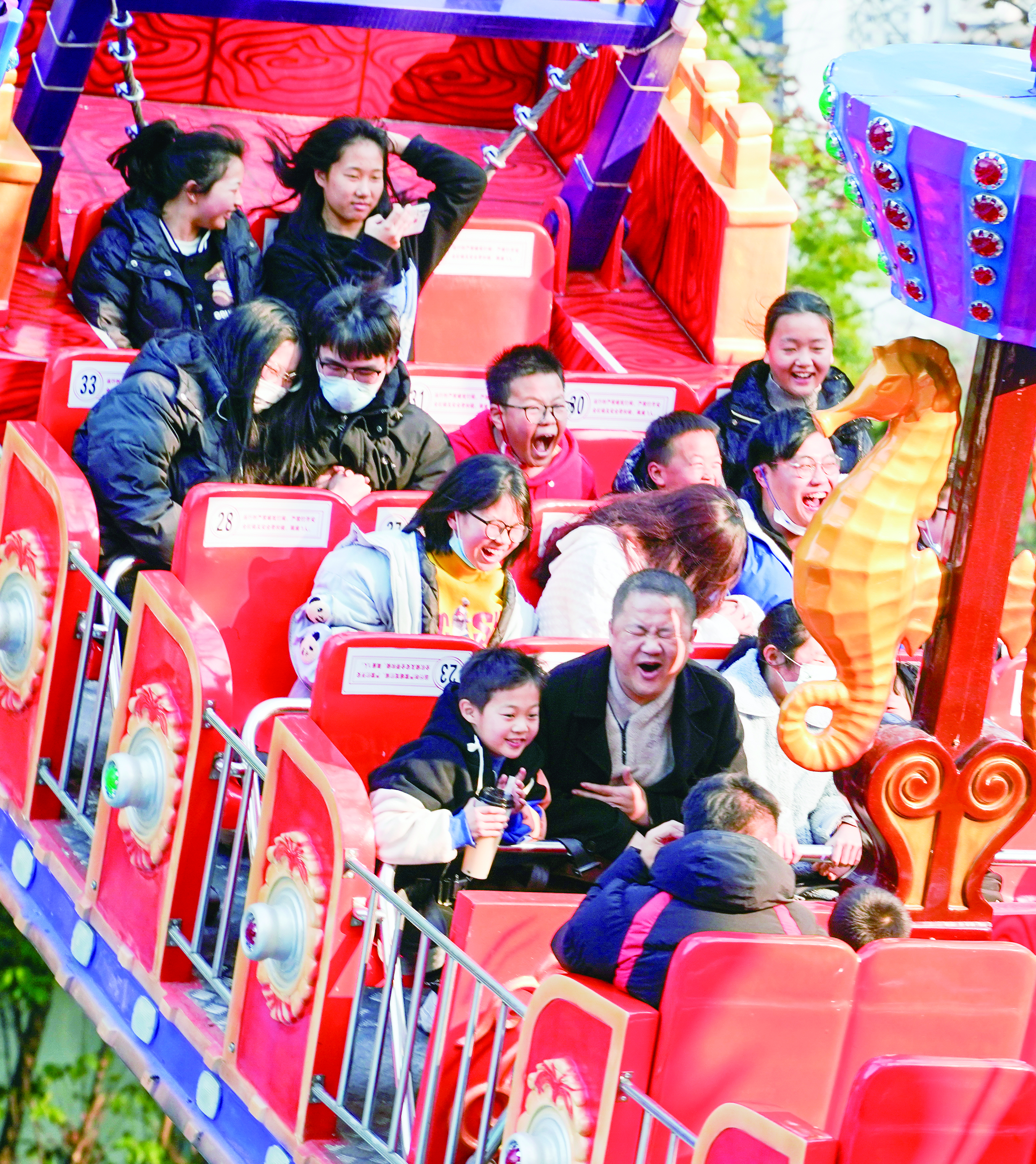 1月2日,神农公园,市民们参加各种游乐项目,享受美好假期。