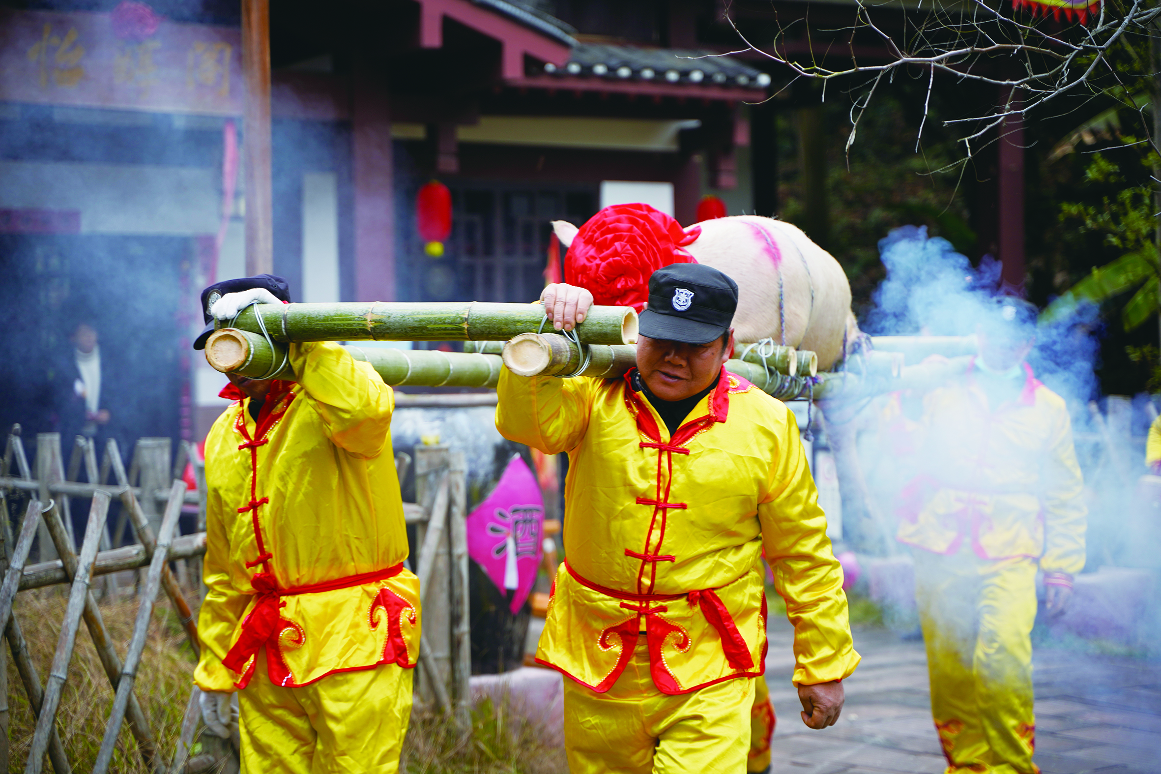 1月3日,攸县酒仙湖景区开展了一场别开生面的抬年猪巡园。一头近300斤的年猪,挂着红缨,由4位壮年男士用竹制的架子抬着,巡游在酒仙湖畔。年猪所到之处,锣鼓欢腾,鞭炮声此起彼伏。巡游过程中,众多游客纷纷拿出手机拍照,记录这地道的湘东民俗仪式。抬年猪是湘东的一大特色年味民俗,寓意喜庆丰收,祈福新年五谷丰登、六畜兴旺、吉祥平安。