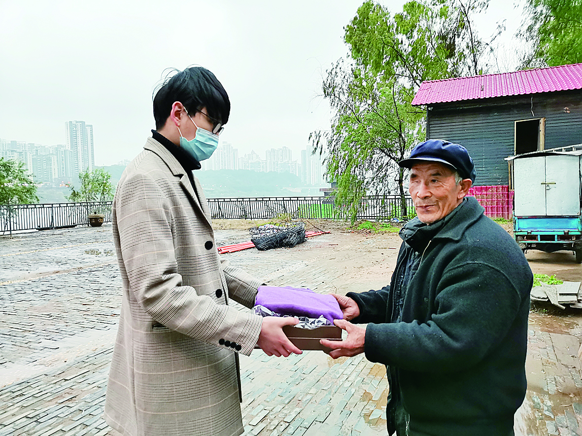 工作人员为流浪乞讨人员送去保暖衣服。 记者/杨如 摄