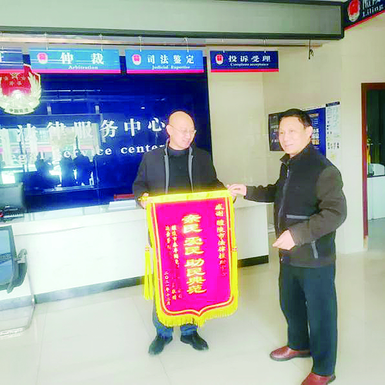 农民工代表给醴陵市法律援助中心赠送锦旗。 通讯员供图