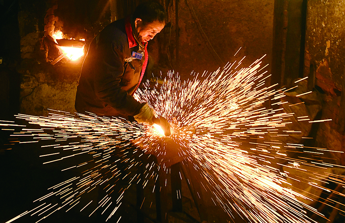 出炉第一锤,火花四射,打铁是邓延辉坚守的副业。