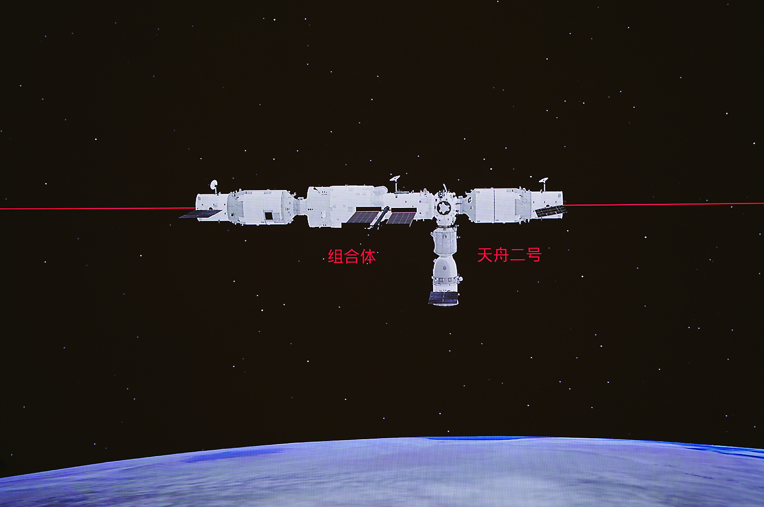 ▲1月8日,神舟十三号航天员乘组进行手控遥操作天舟二号货运飞船与空间站组合体交会对接试验。 新华社发