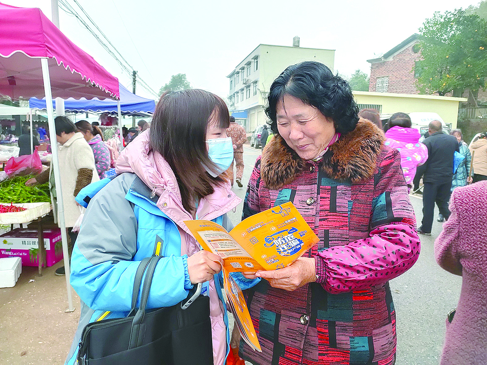 群丰镇新塘社区网格员彭露在集市宣传反电诈。 通讯员供图
