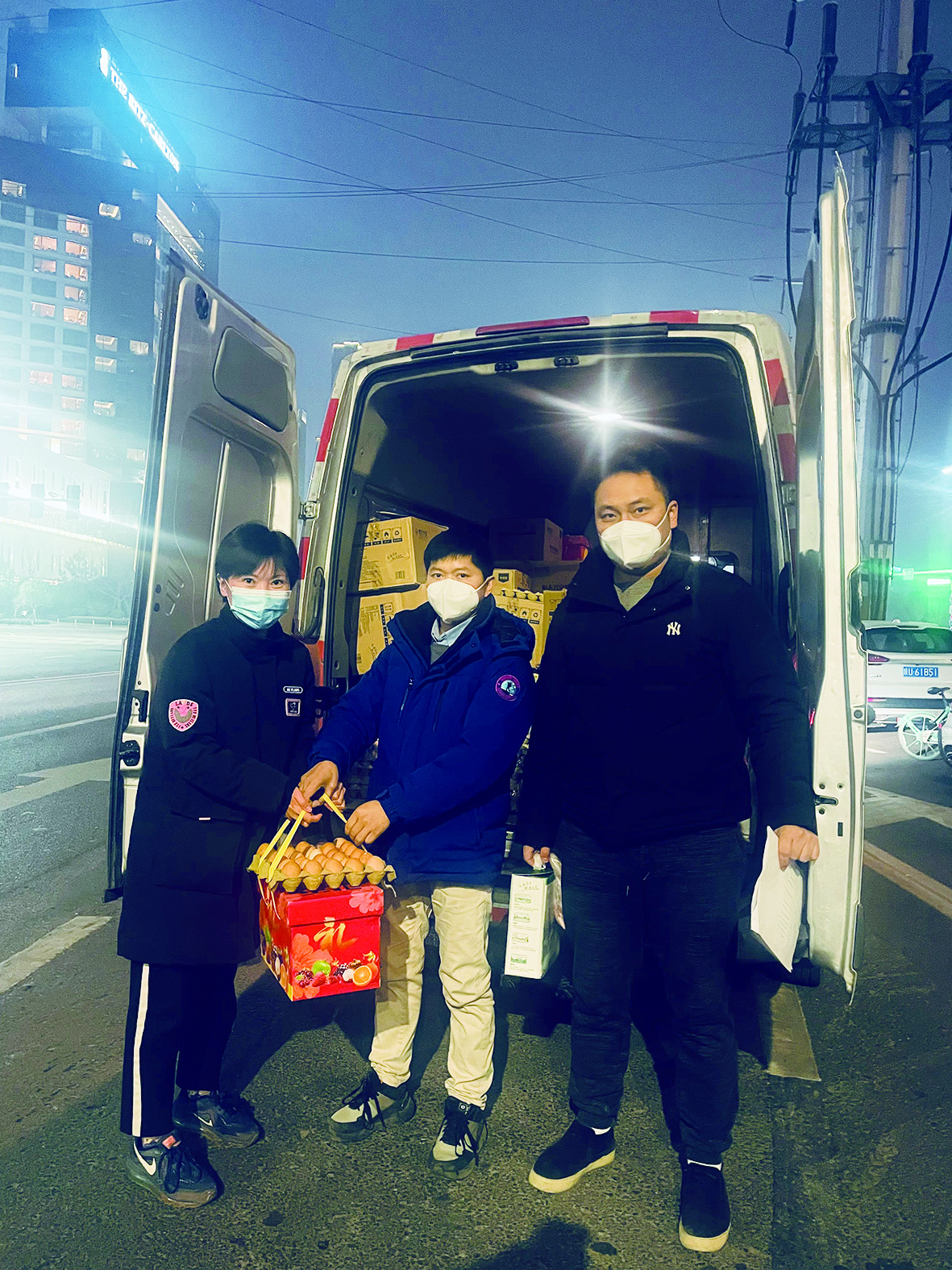从家出发,到库房取生活物资,满满当当地装满一车,转运到城市各个接收点,再回到库房,开始第二轮转运,这样的“摆渡”,周杰一天要来回三四趟。