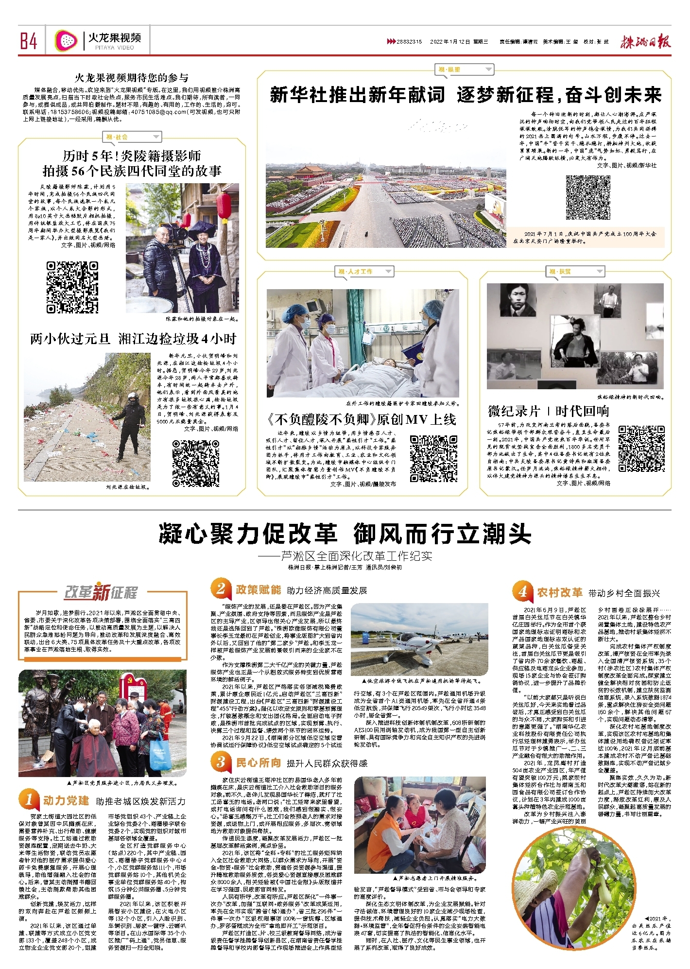 岁月如歌,追梦前行。2021年以来,芦淞区全面贯彻中央、省委、市委关于深化改革各项决策部署,围绕全面落实“三高四新”战略定位和使命任务,以推动高质量发展为主题,以解决人民群众急难愁盼问题为导向,推动改革和发展深度融合、高效联动,出台6大类、75项具体改革任务及十大重点改革,各项改革事业在芦淞落地生根、取得实效。