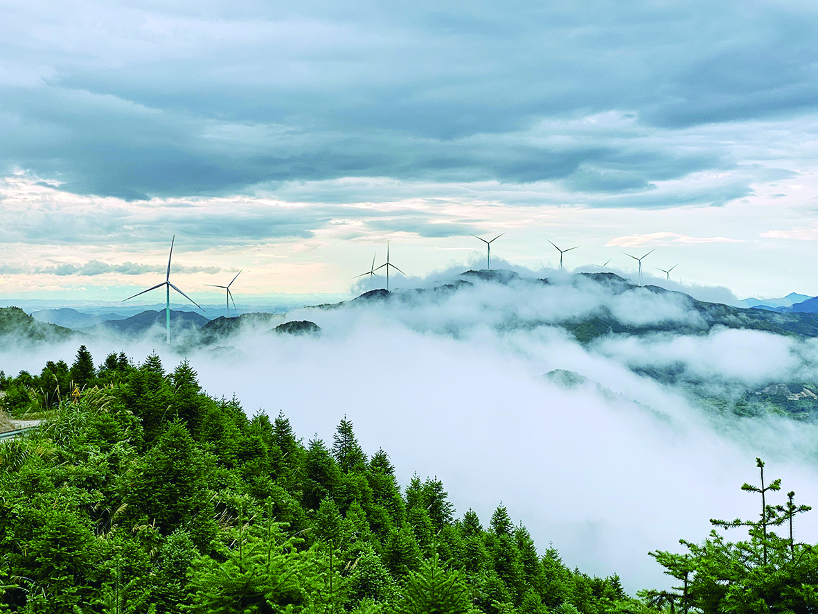 湖南火电承建的华能打鼓寨风电场项目在云雾中彰显风采。 企业供图