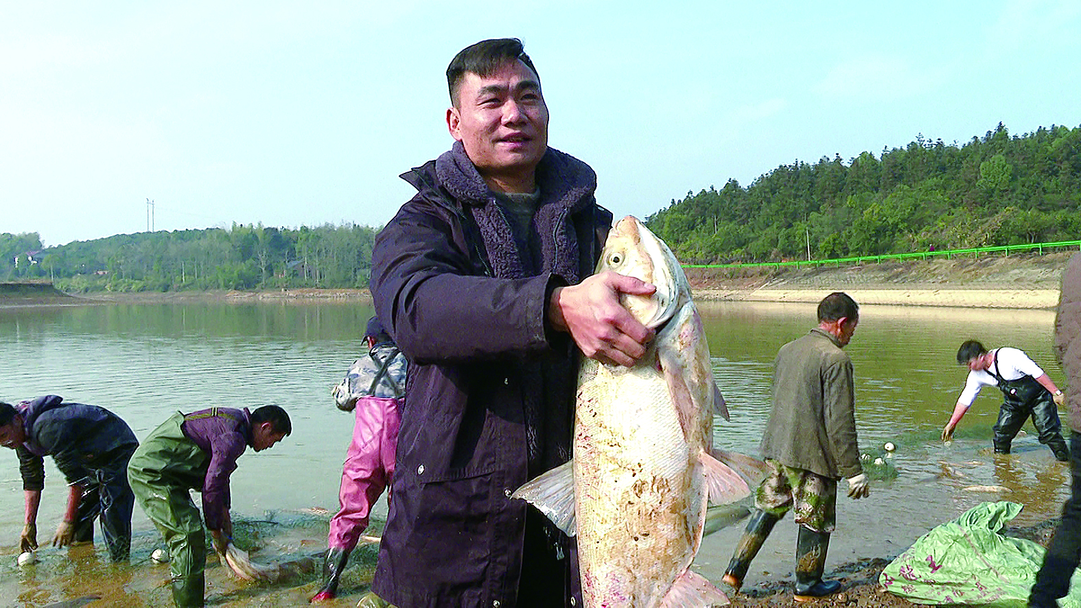 水库内,只见几位穿着连体胶皮裤的捕鱼师傅分开站立,在吆喝声中不停地拉动手中的网,肥美的草鱼、青鱼、白鲢、鲫鱼在网中翻滚,溅起朵朵水花。“这些鱼不吃饲料的,肉质好,很受市场欢迎。”郭塘水库养殖户张武介绍,水库水产养殖面积有60亩,草鱼、鲢鱼、鳙鱼和鲫鱼、桂鱼、鲈鱼、翘嘴应有尽有,鱼类年产量5吨左右,养殖周期在2年以上。
