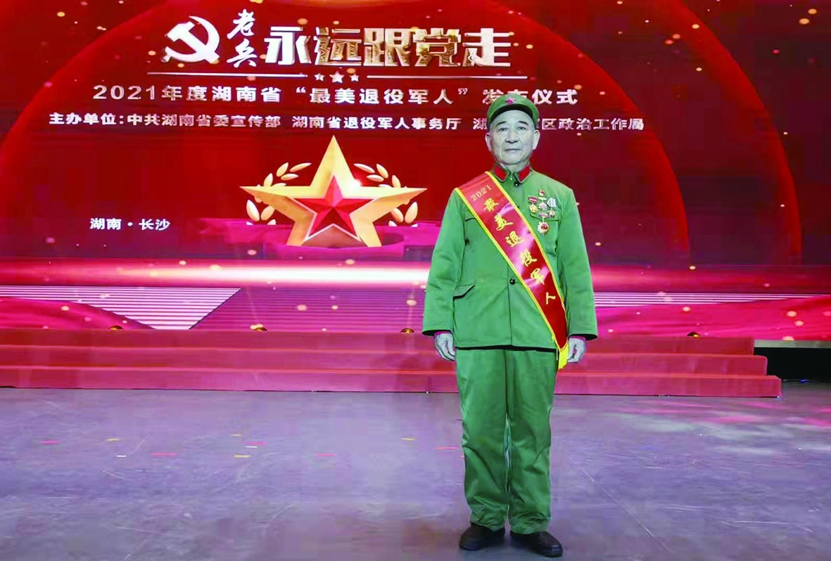 株洲日报·掌上株洲讯(记者/李逸峰) 1月11日,由省委宣传部、省退役军人事务厅、省军区政治工作局联合举办的2021年度湖南省“最美退役军人”发布仪式在长沙举行,现场为10名全省“最美退役军人”颁奖。作为我市唯一获奖代表,中盐株洲化工集团退休干部、80岁的刘欲求老人精神矍铄登上领奖台。