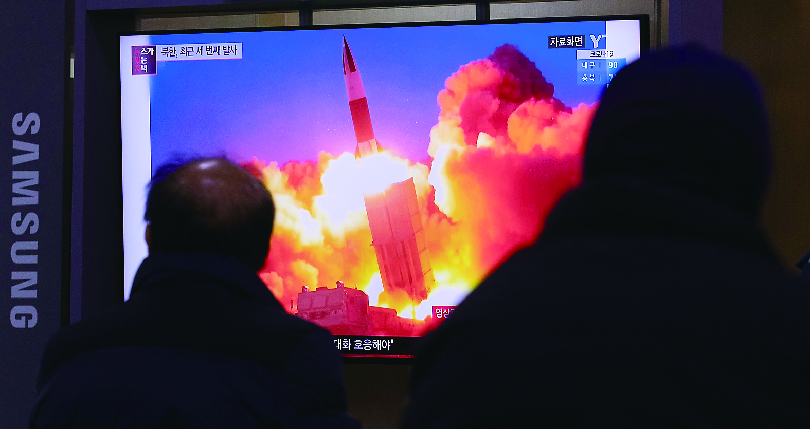 1月14日,在韩国首尔站候车室,市民收看朝鲜当天向东部方向发射不明发射体的新闻。 新华社发