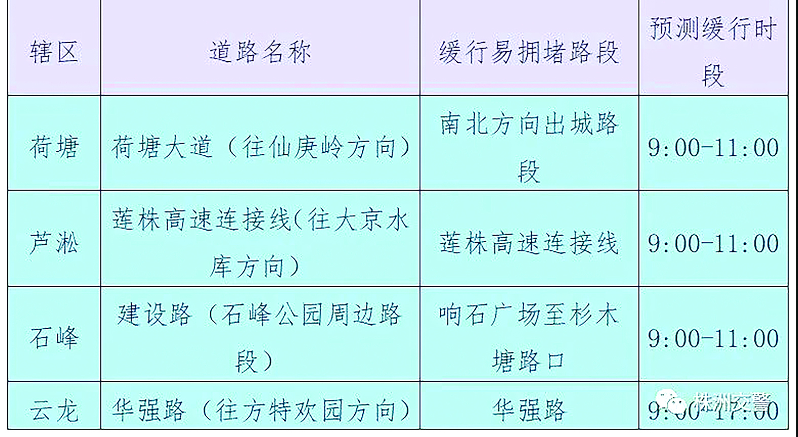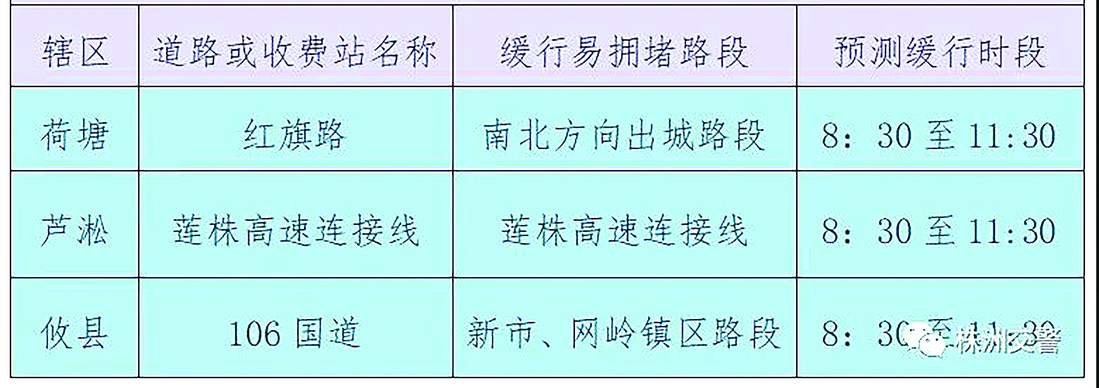 株洲各县(市)区道路缓行易堵路段预测。通讯员供图