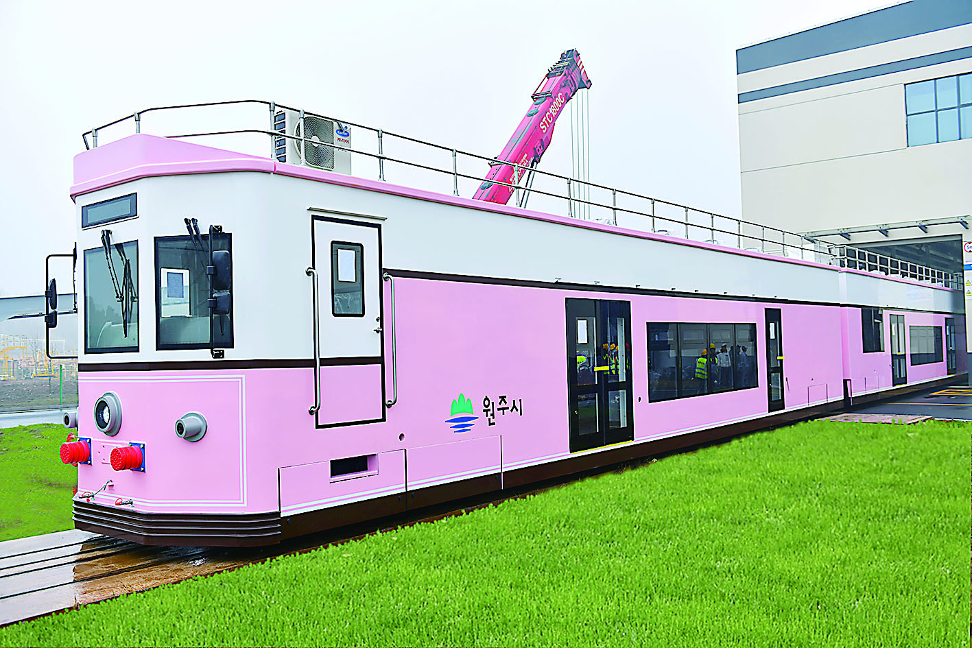 株洲日报·掌上株洲讯(记者/高晓燕 通讯员/欧阳柳) 穿山越海哼你的歌,踏浪飘帆享海风拂面。韩国海云台景区,从今以后又多一景。1月22日,由株洲中车特种装备科技有限公司(以下简称中车株洲特装公司)自主研发的新型双层双轨旅游专列下线,即将整车发往韩国。