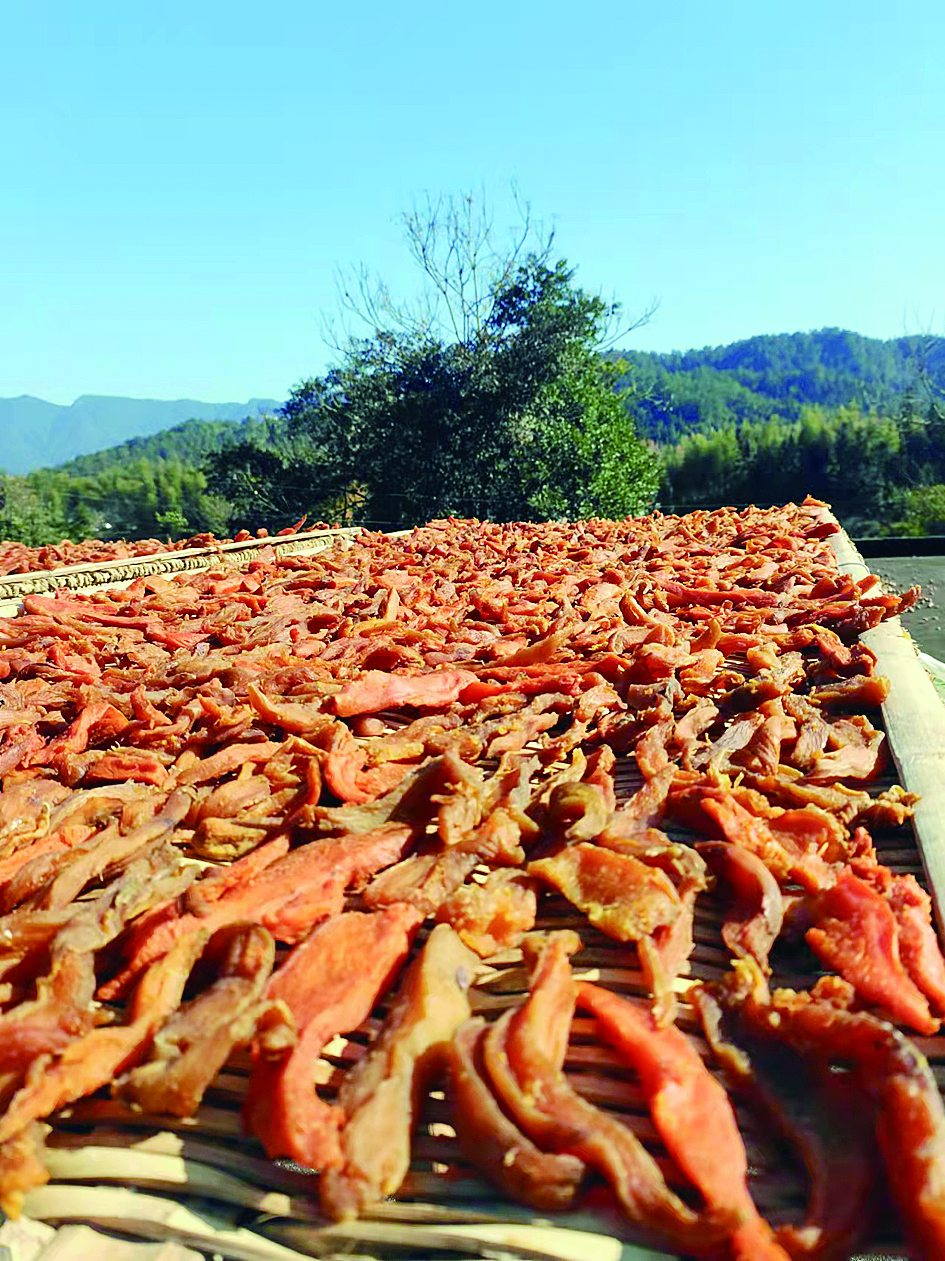 现在的零食五花八门,但在过去,我们家的零食至少一半是妈妈和奶奶自己做的,比如薯片,有干的,湿的,干的更好保存,湿的更可口。还有南瓜干、花生豆、炒蚕豆、炒南瓜子、李子干、杨梅干,都是过年时候接待客人的重要食物。现在很多东西都不做了,但红薯片还会做,因为市面上好吃又纯天然的红薯片基本找不出来,没有自家做的那个 味道正宗。于是我妈和我奶奶每年都会自己做红薯片,自家种的红薯洗干净,下锅蒸熟,切片,在大晴天晒干,晒干还不够,有的会太硬,老人孩子吃不烂,于是再上锅蒸一次,用蒸气将红薯干焖得柔软些,然后再收起,稍微晾干,那个味道刚刚好,柔软又有嚼劲,非常香甜好吃。