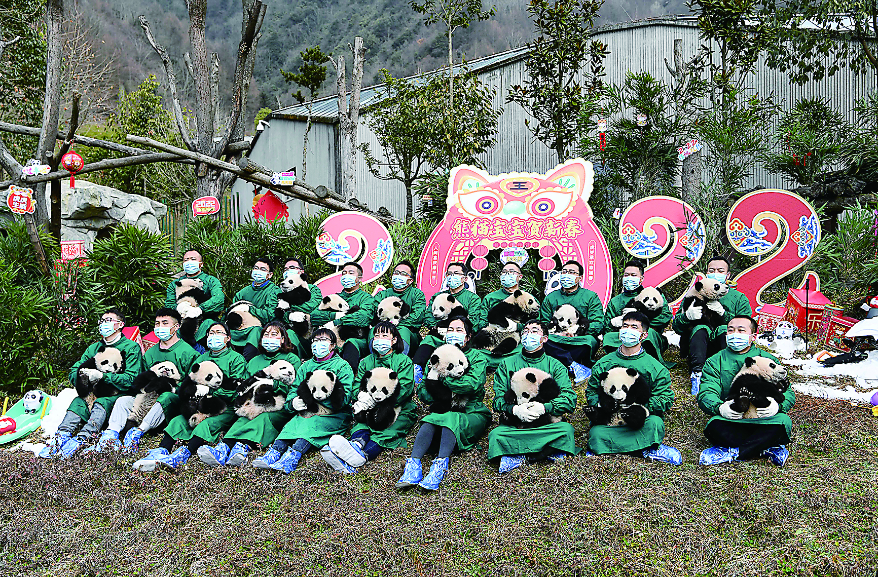据人民网 昨日上午,在中国大熊猫保护研究中心卧龙神树坪基地,20只半岁左右的熊猫宝宝元气满满的集体亮相,向全国人民送上最萌的新春祝福。