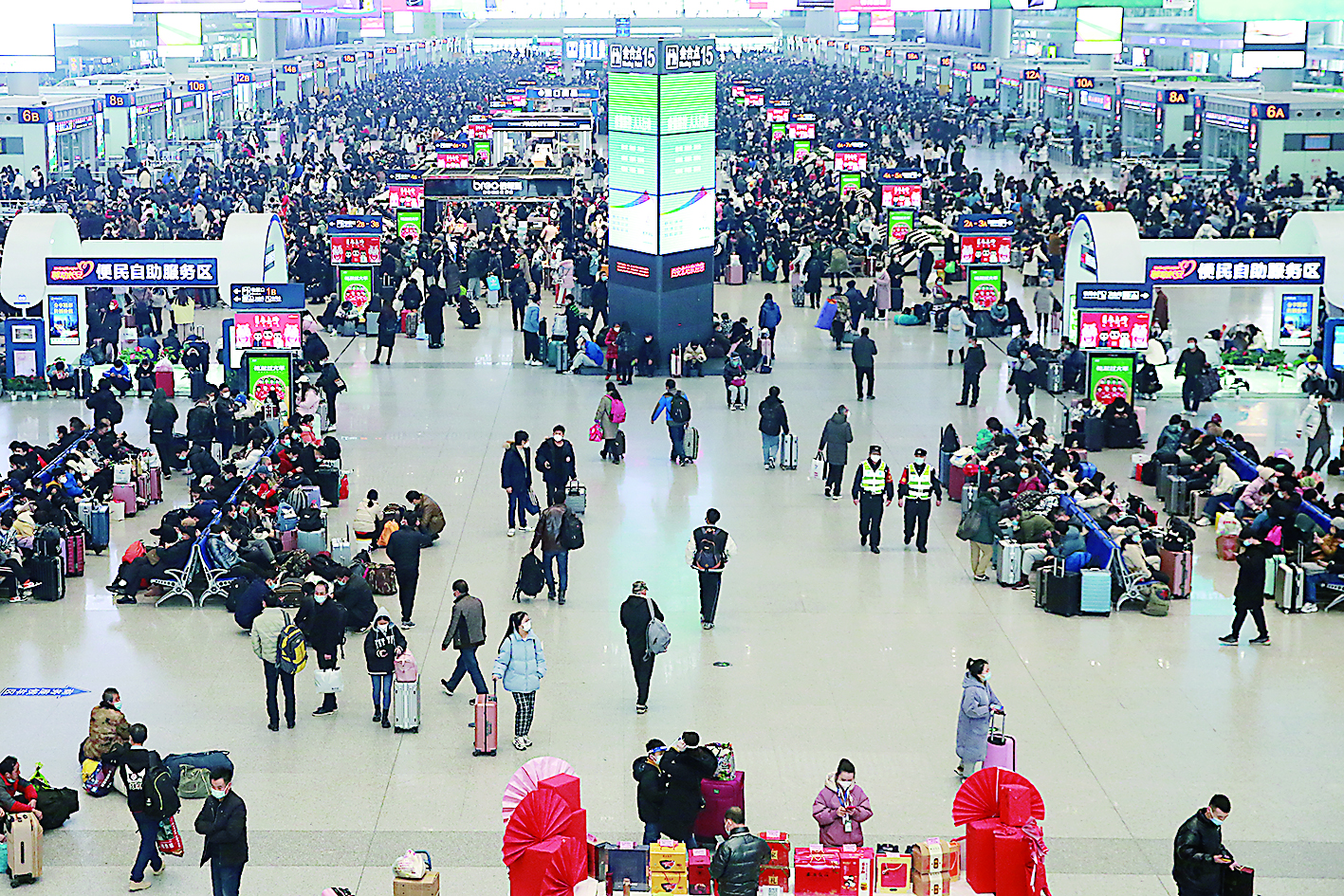 1月24日,陕西西安北站候车室里人头攒动。 随着西安中高风险地区清零,1月24日起,全市降为低风险地区。交通工具全面恢复运营,有序复工复产,各级党政机关、企事业单位恢复正常办公秩序。 新华社发(张鑫摄)