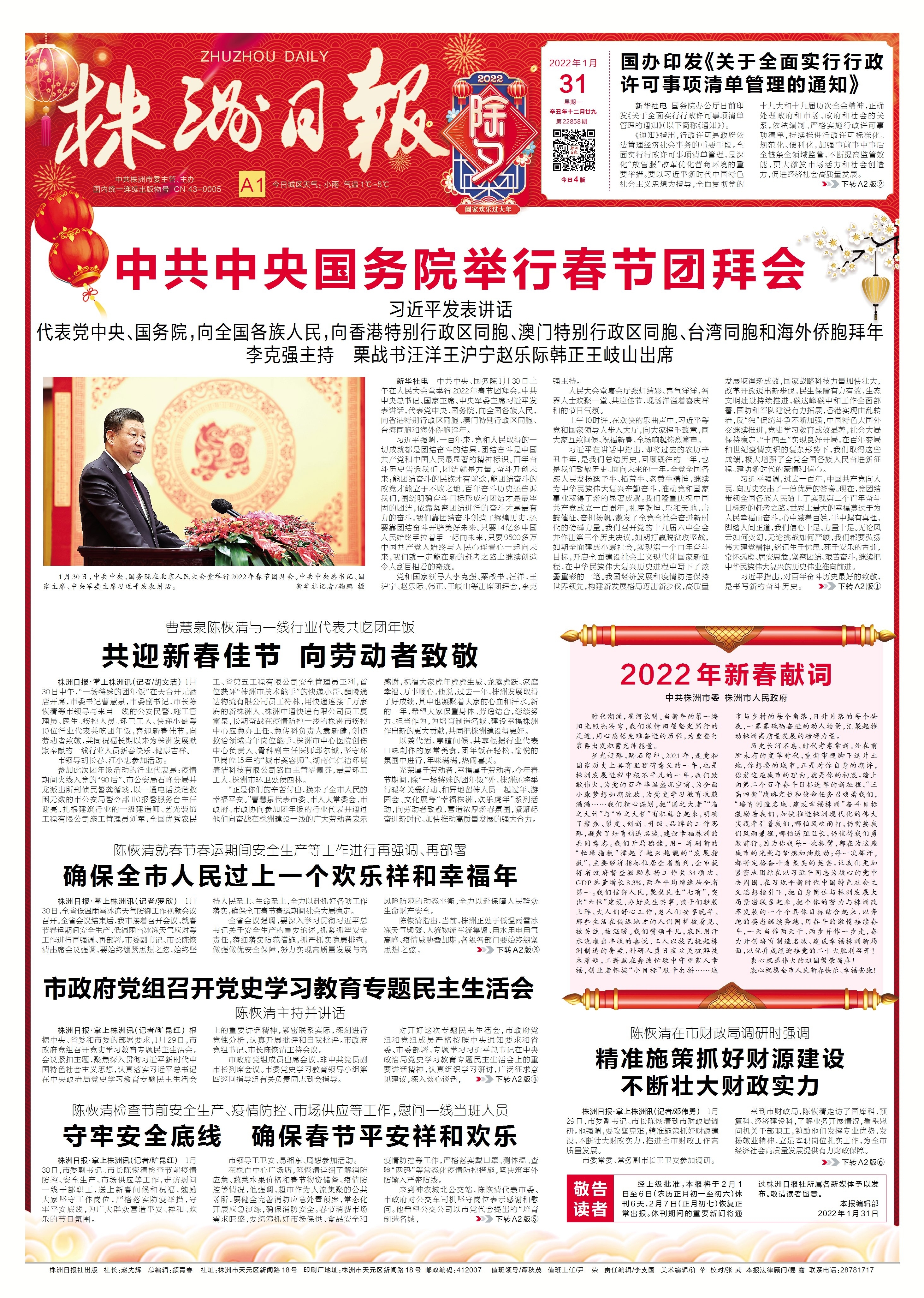 经上级批准,本报将于2月1日至6日(农历正月初一至初六)休刊6天,2月7日(正月初七)恢复正常出报。休刊期间的重要新闻将通过株洲日报社所属各新媒体予以发布。敬请读者留意。