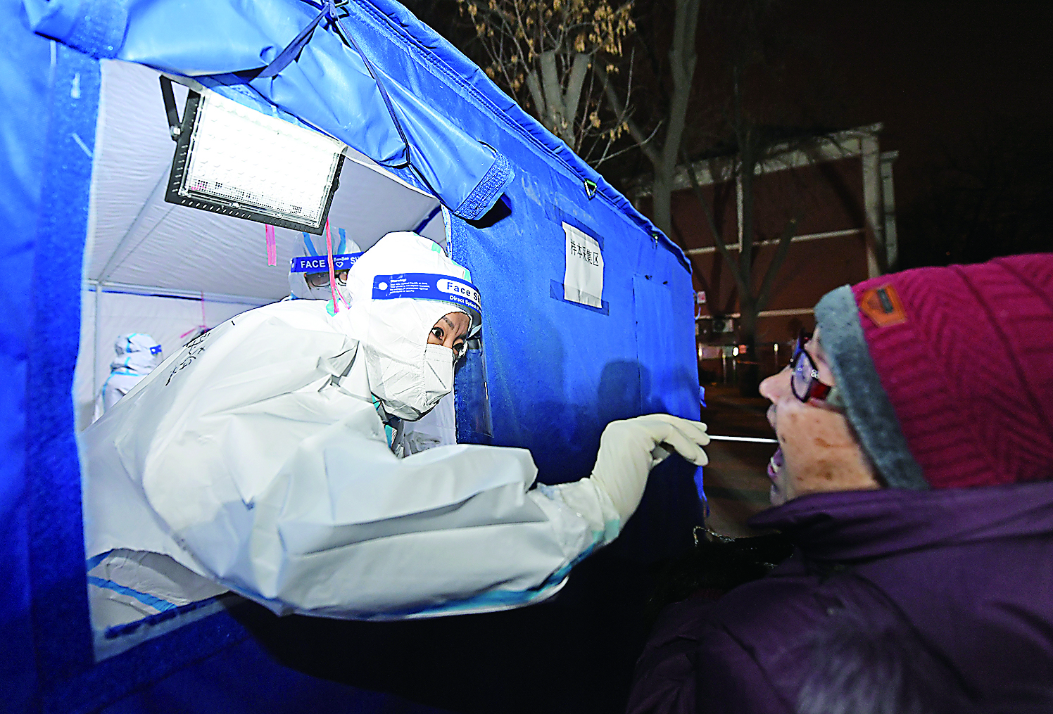 1月20日,在天津市南开区南大西南一社区核酸检测点,医务人员为社区居民做核酸采样。 当日是大寒节气,天津最低气温达到零下5摄氏度。黎明时分,医务工作者、志愿者、社区工作者等核酸检测相关工作人员陆续到岗,保障6时起开展的天津市第四轮全员核酸检测工作顺利进行。 新华社记者 赵子硕 摄