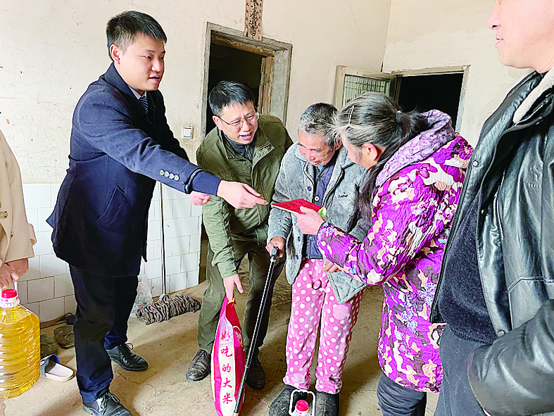 春节将至,岁寒情深。近日,株洲农商银行及所辖支行主动与村镇、社区对接,对困难群众进行摸底,走访慰问108户社区困难群众和42名行内困难职工、退休职工,送去慰问款物逾10万元。图为雷打石支行员工登门给社区困难家庭送去慰问物资和慰问金。