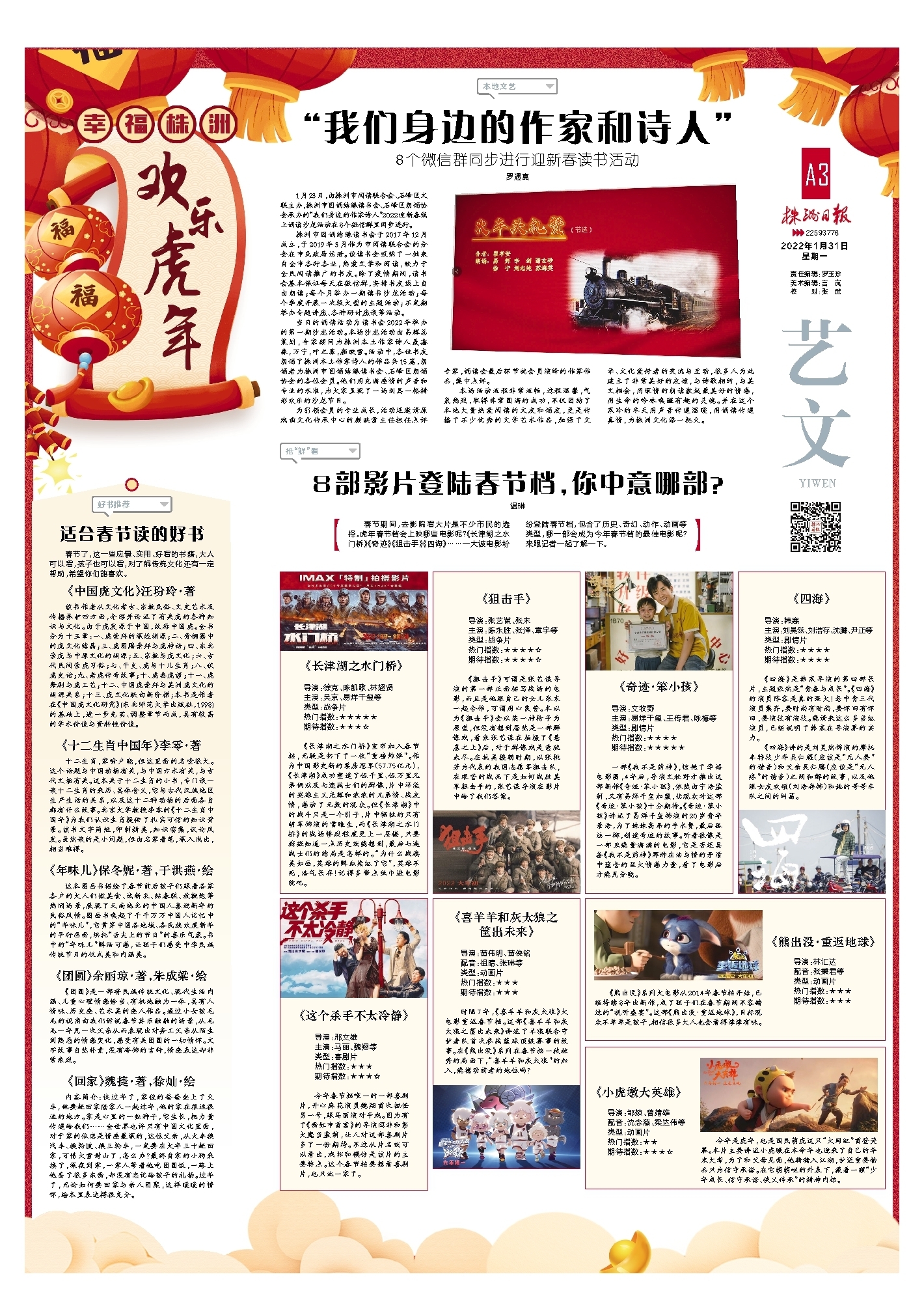 春节期间,去影院看大片是不少市民的选择。虎年春节档会上映哪些电影呢?《长津湖之水门桥》《奇迹》《狙击手》《四海》……一大波电影纷纷登陆春节档,包含了历史、奇幻、动作、动画等类型,哪一部会成为今年春节档的最佳电影呢?来跟记者一起了解一下。