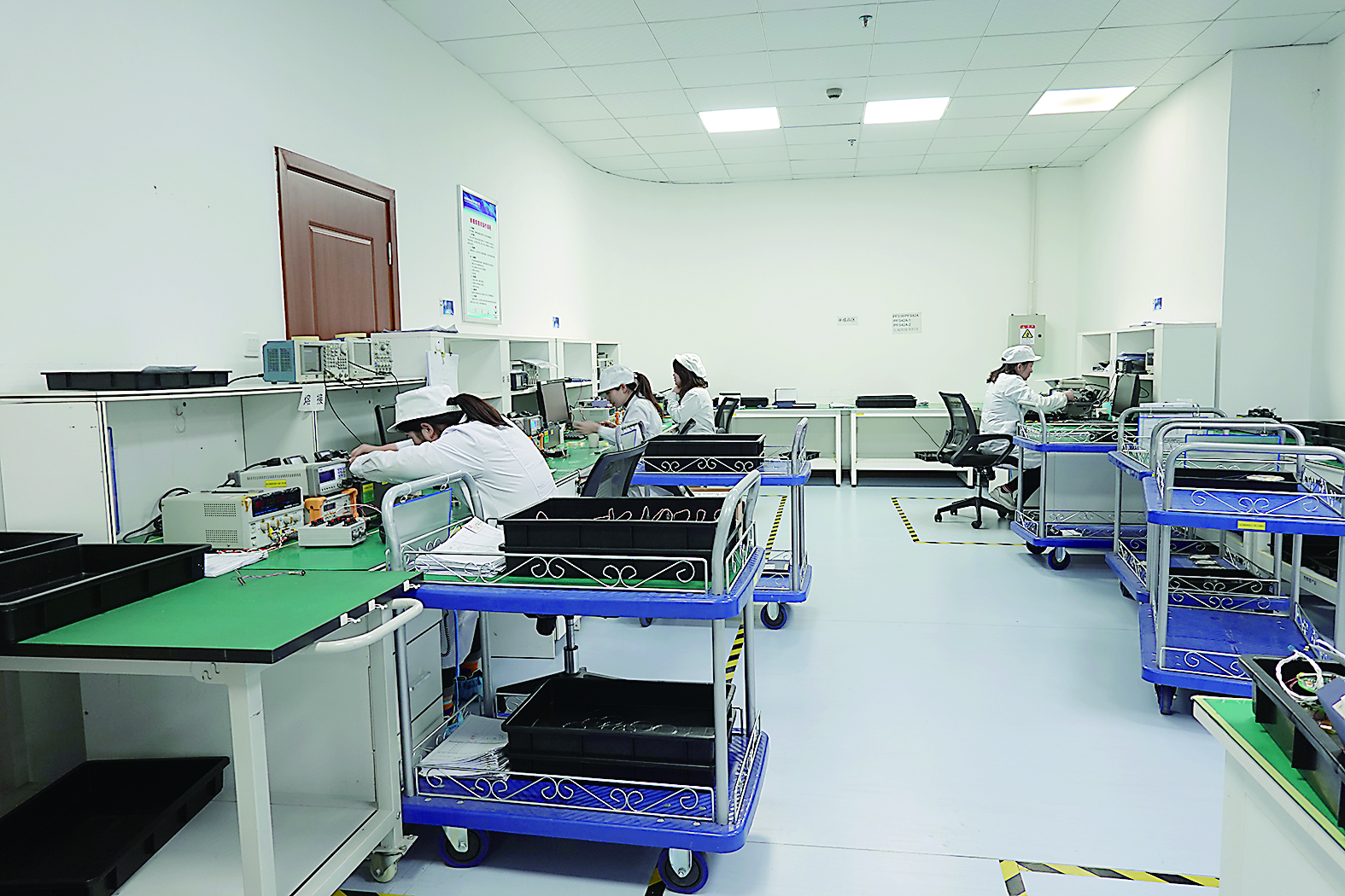 株洲菲斯罗克光电科技股份有限公司工厂内的工作人员在装配车间组装零部件。 株洲日报·掌上株洲记者/张媛 摄