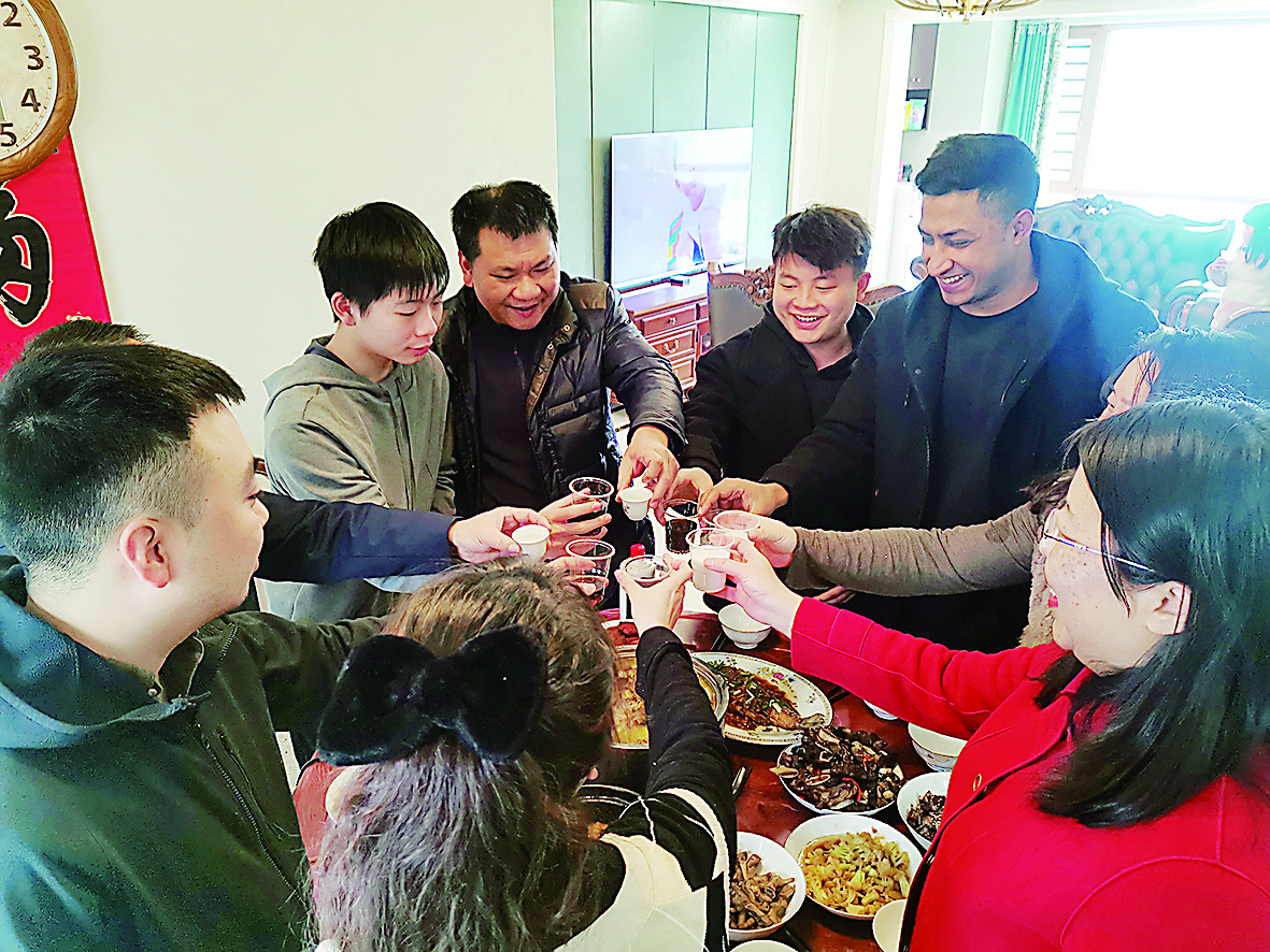 伴随着一声“干杯”和一句句新年祝福语,饭桌上不再有陌生和尴尬。