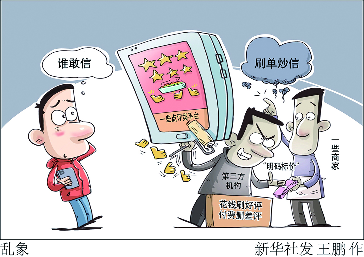 不久前,中央网信办部署在全国范围内开展“清朗·打击流量造假、黑公关、网络水军”专项行动,治理生活服务、书影音评分、短视频等平台刷分控评、刷单炒信等流量造假问题。业内专家建议监管部门、平台、商家、消费者多方携手,共建健康“点评生态”。