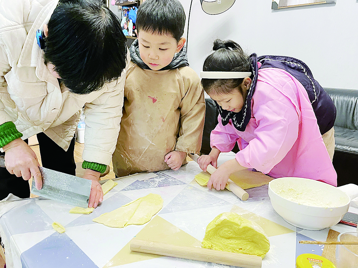 孩子们擀面学着做油炸麻花。株洲日报·掌上株洲记者/戴凛 摄