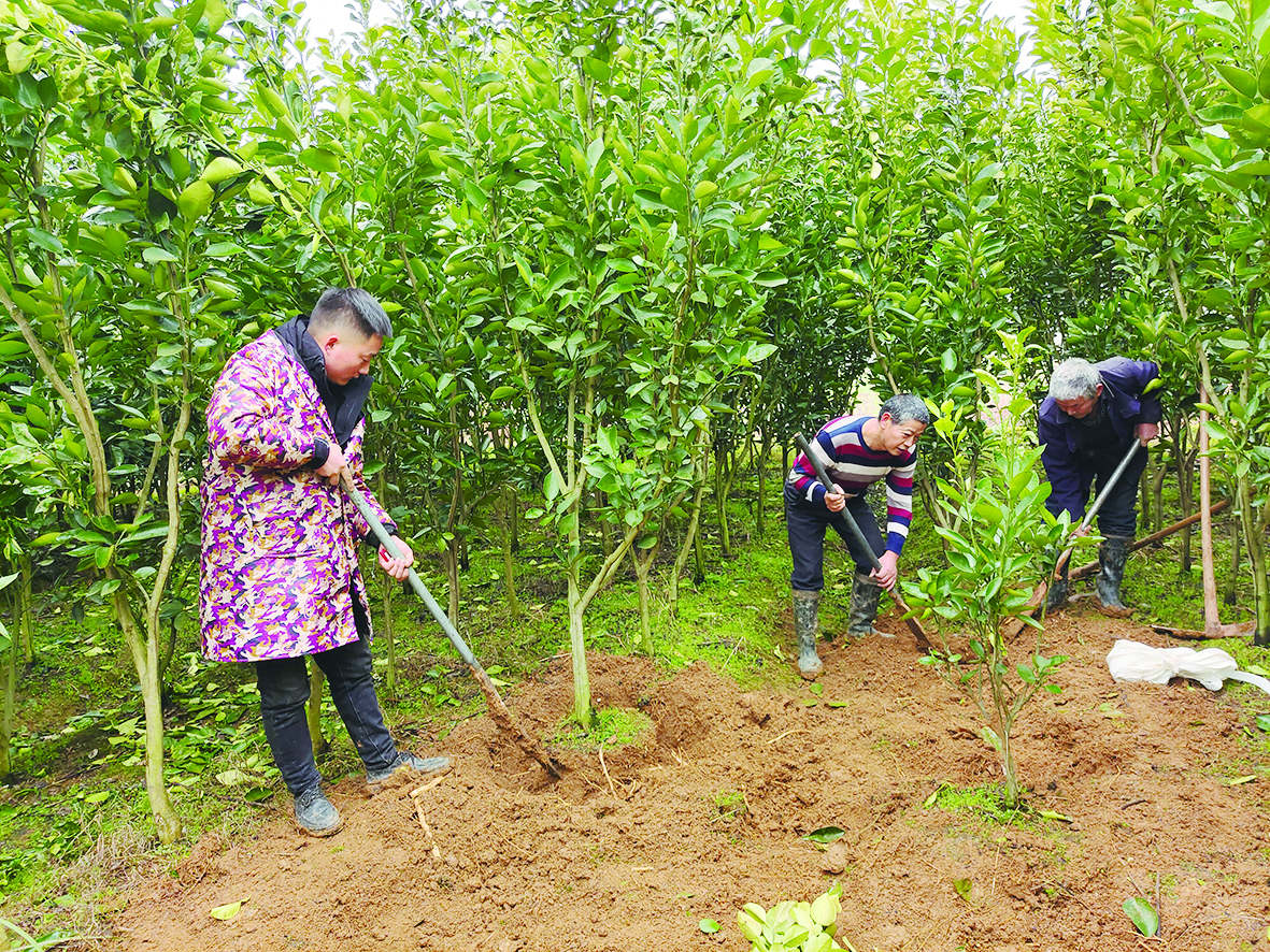 10棵柚子树被预定,郭道和几个帮手忙着挖出柚子树“打包”。 株洲日报·掌上株洲记者/张媛 摄