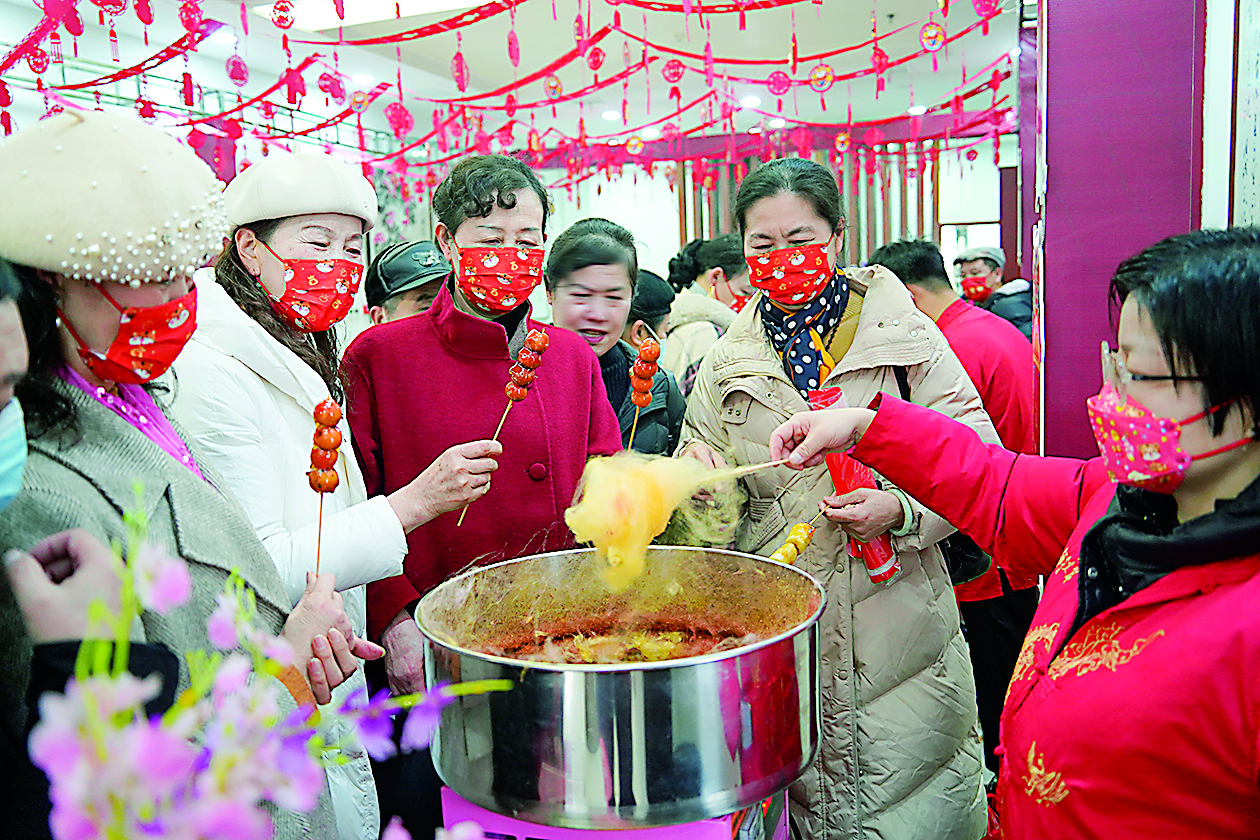2月15日,是传统元宵佳节。在株洲市文化馆一楼及前坪,人声鼎沸、欢笑如潮。“福满株洲”元宵系列活动在此举行,吸引众多市民热情参与。图为市民正在品尝传统小吃。株洲日报·掌上株洲记者/刘震 摄