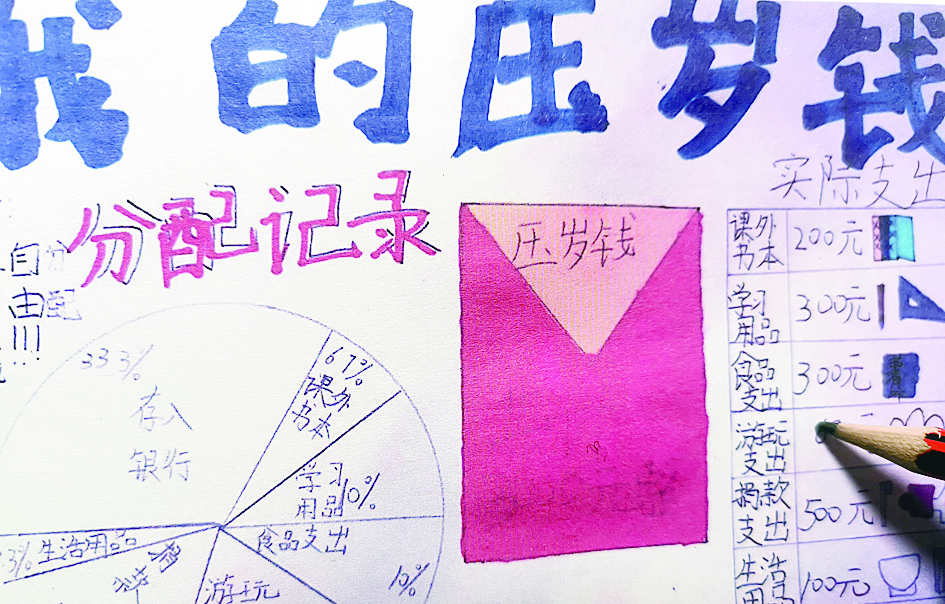 周雨涵表示,往年收到压岁钱后,大部分也都是自己保管。但是由于缺少使用规划,钱花着花着就没了。今年在爸爸妈妈的建议下,自己制作了这样一个图,作为接下来支出的具体依据。