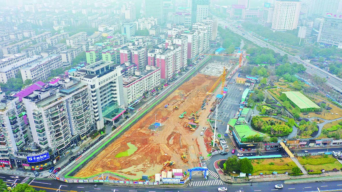 天气寒冷,但长江广场地下空间综合开发工程一期项目建设现场,一派热火朝天的景象。该项目于正月初六复工,高峰期的作业人数多达300人。