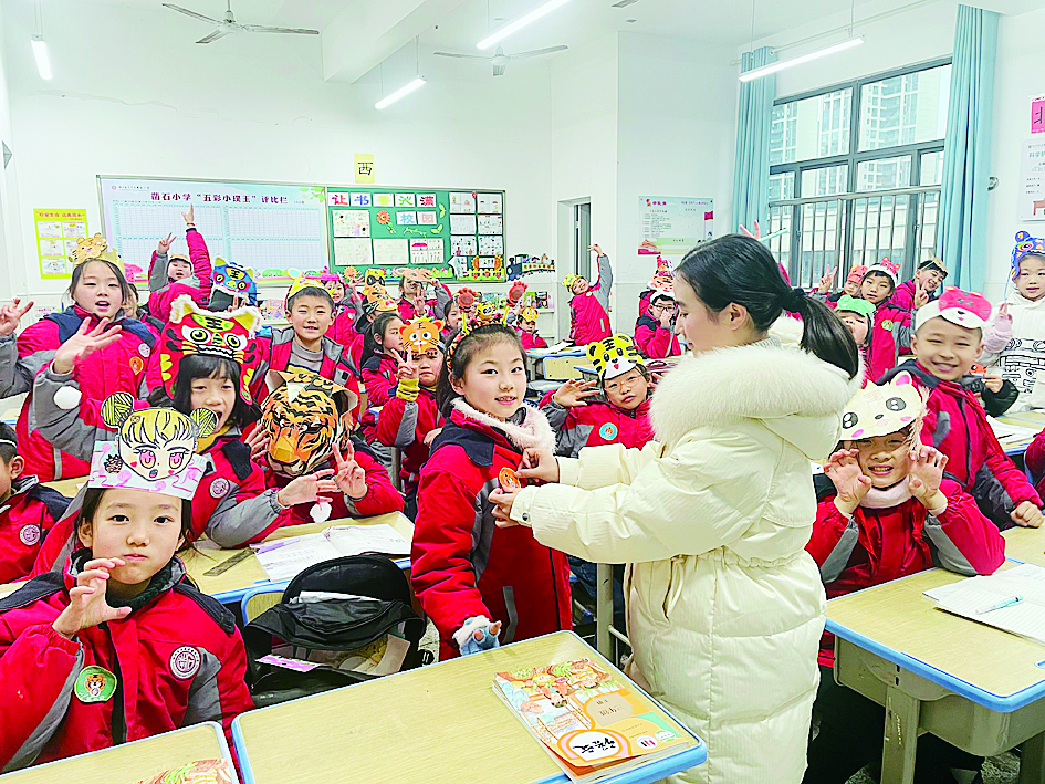在天元区凿石小学,举行以“六虎迎新,快乐启航”为主题的开学第一课,向学生们介绍了智慧虎、勇敢虎、美丽虎、自律虎、健康虎等“六虎”不同的个性特点。各班班主任根据每个学生不同的个性特点,为每位同学派发“六虎”贴纸,为他们送上新年的希望和祝福。