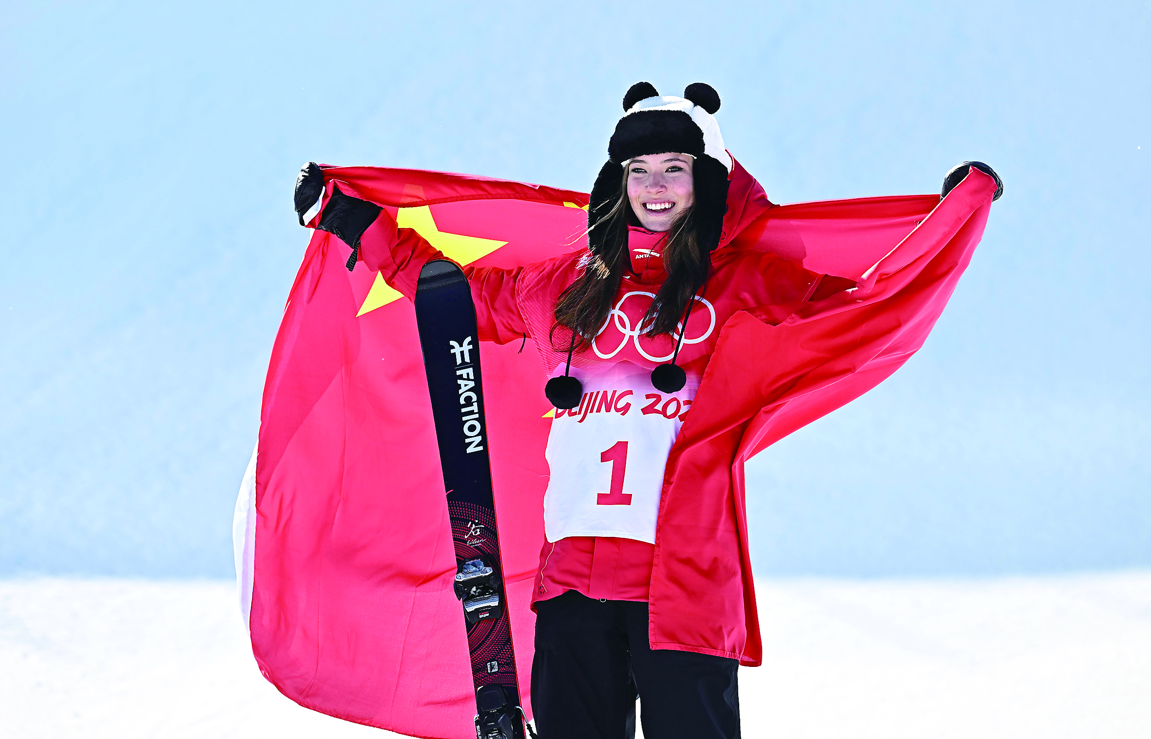2月18日,中国队选手谷爱凌在颁发纪念品仪式上。 新华社记者 肖艺九 摄