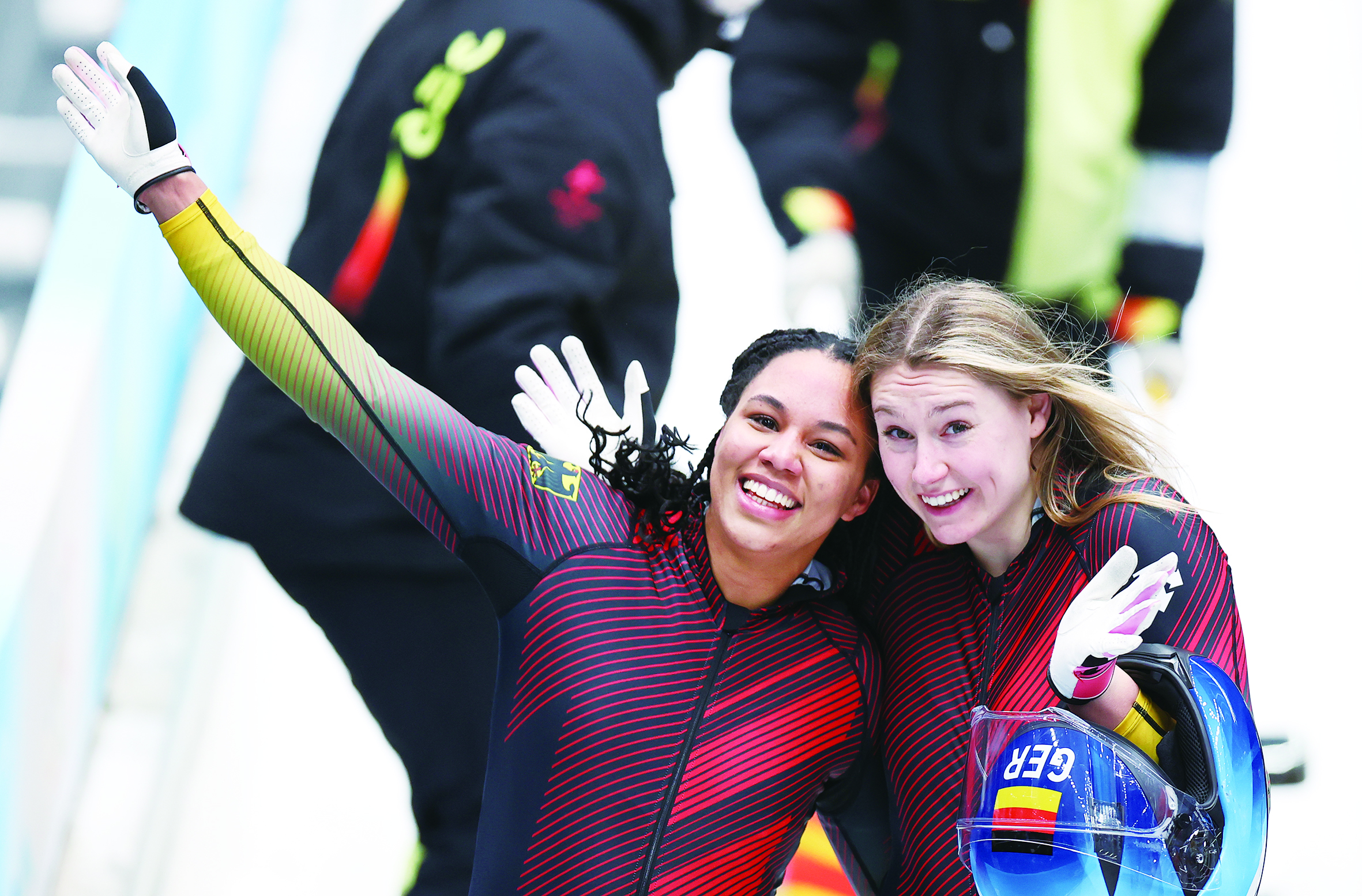 当日,北京2022年冬奥会女子双人雪车比赛在国家雪车雪橇中心举行,德国选手劳拉·诺尔特和德博拉·莱维夺得冠军。 新华社记者 姚剑锋 摄