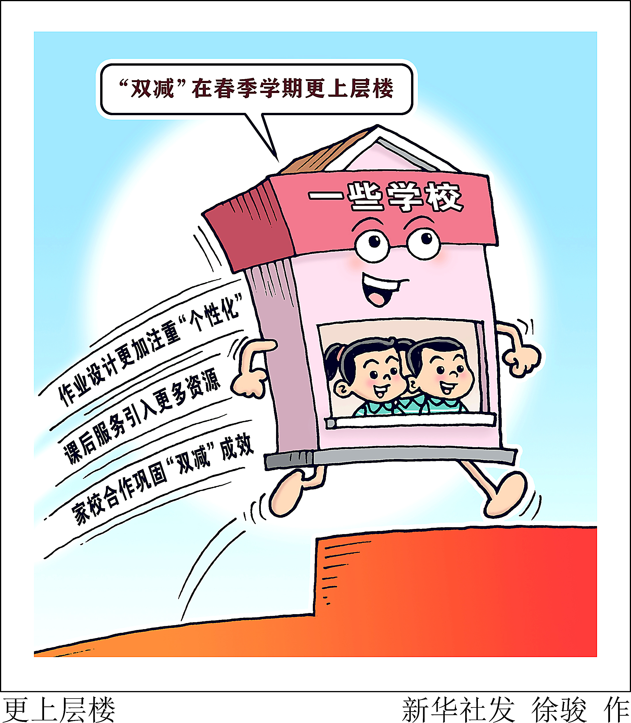 漫画:更上层楼 新华社发 徐骏 作