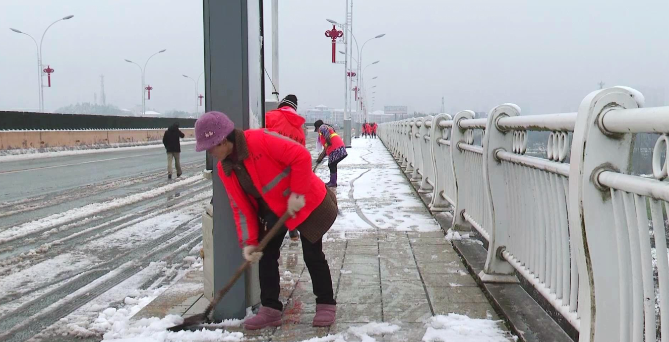 2月23日清早,在车辆及行人较多的迎宾大道桥面上,攸县市政园林管理处、攸县环卫管理处组成的两支除雪突击队,采取设立警示牌、人力扫雪等措施,清理路面积雪,确保道路畅通和行车安全。