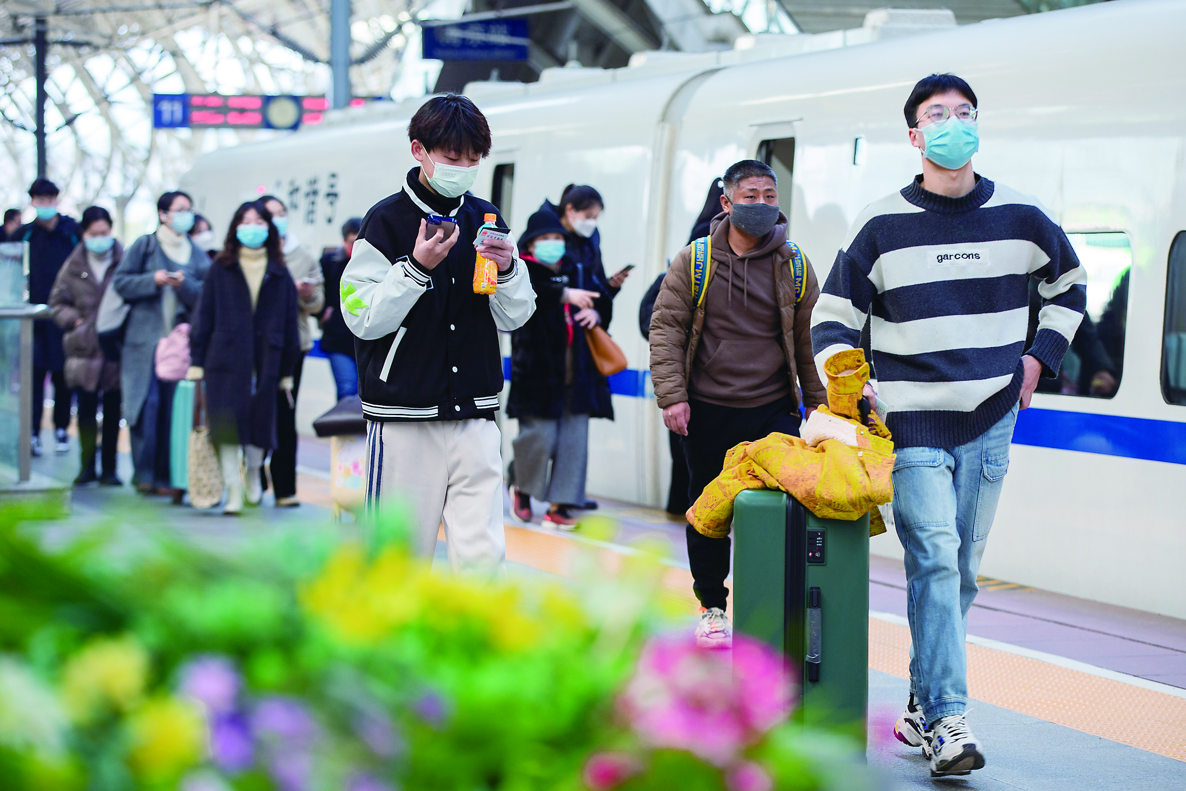 2月25日,旅客在南京火车站乘车出行。新华社发