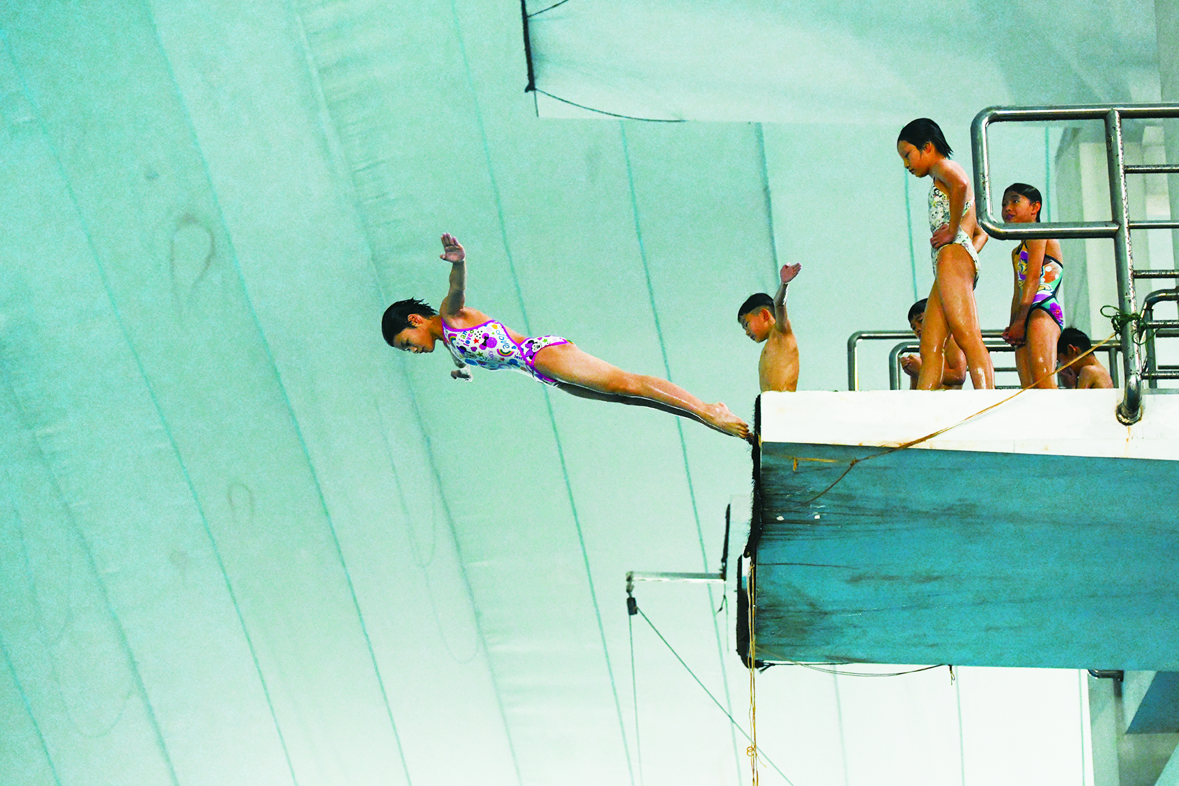 10米跳台要一级一级地上。“登”上这50多级台阶,9岁的李诗睿用了好几年时间。她摆好姿势,从10米跳台一跃而下,水花漾起后很快平复,泳池边响起了一阵掌声。