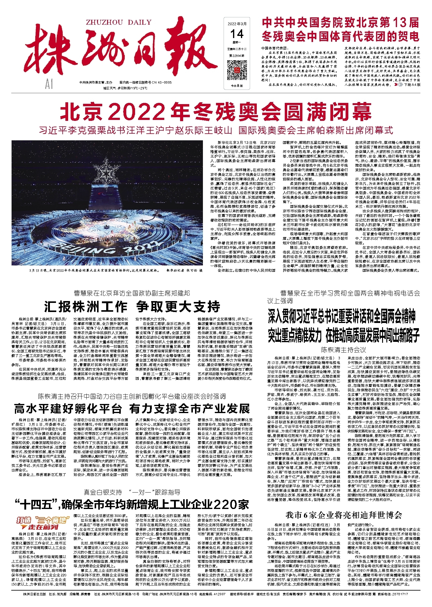 中共中央国务院致北京第13届冬残奥会中国体育代表团的贺电