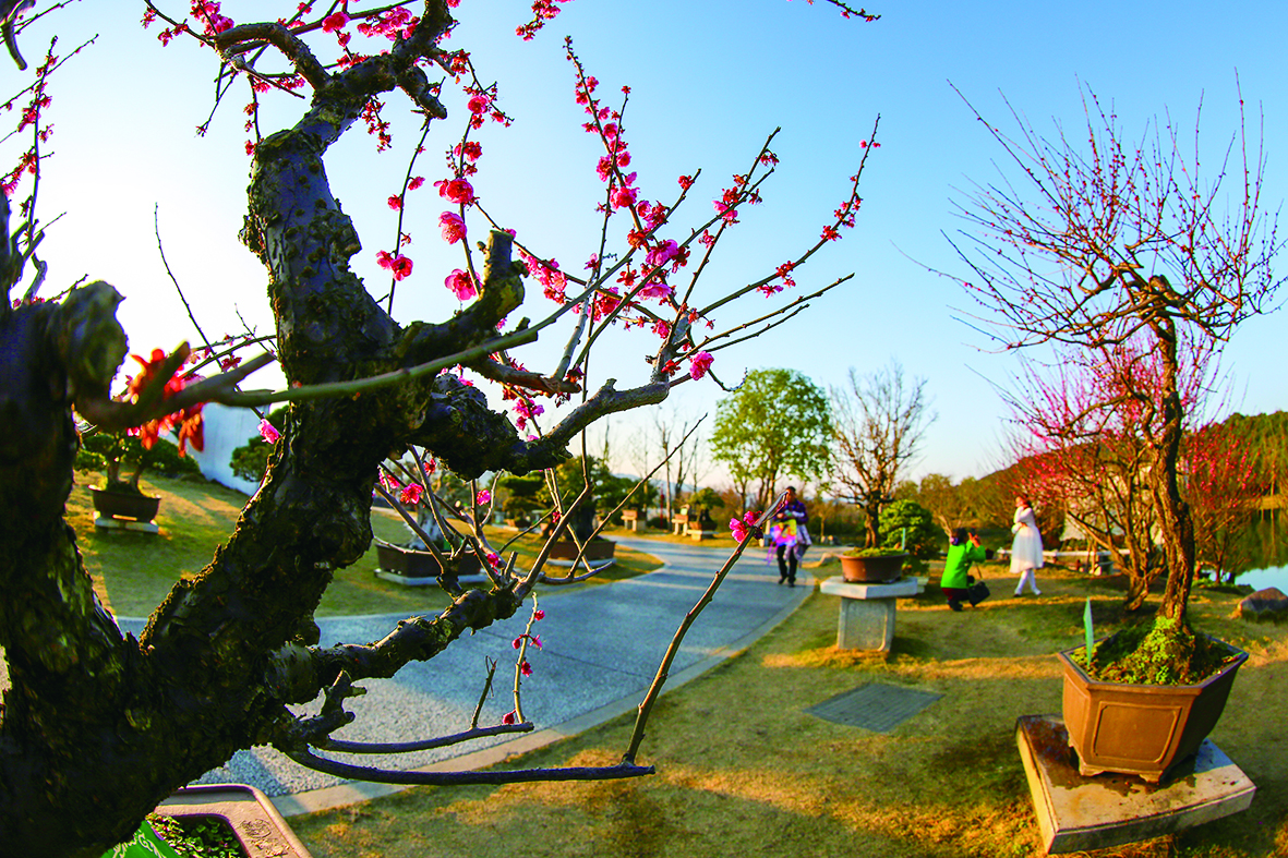 春寒料峭中,在炎帝陵景区神农园里,梅开百花之先,独天下而春。红的、粉的花朵楚楚动人,吸引了不少市民前来观赏拍照。