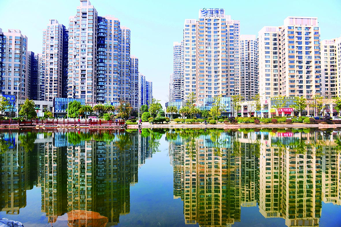 3月2日,阳光明媚,天元区栗雨湖畔,楼群、湖光、倒影,构成美丽的城市春景。