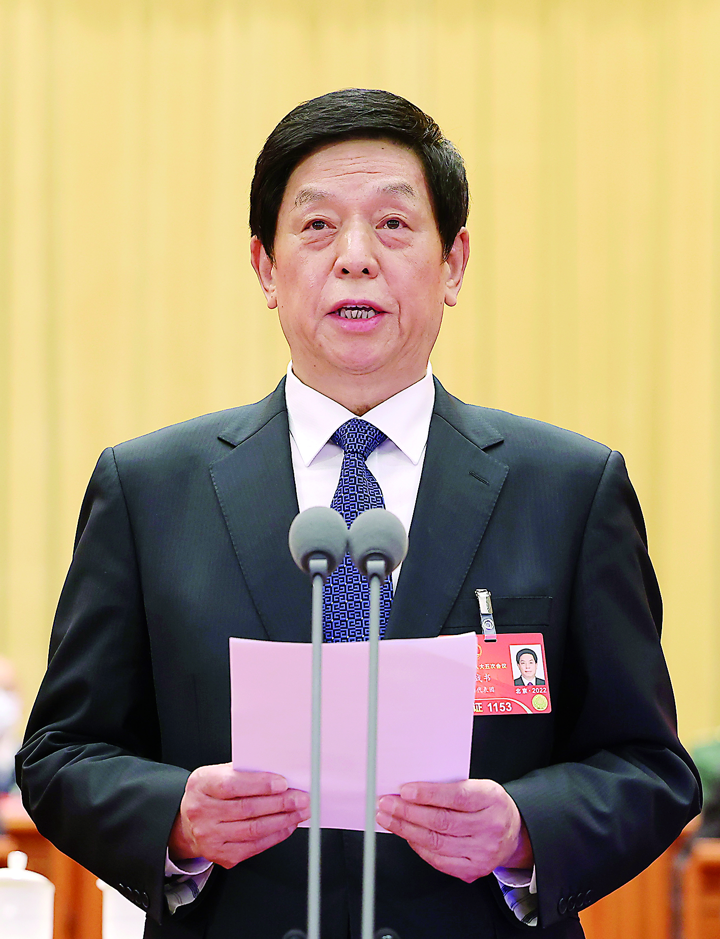 3月5日,第十三届全国人民代表大会第五次会议在北京人民大会堂开幕。大会主席团常务主席、执行主席栗战书主持大会。新华社记者/黄敬文 摄