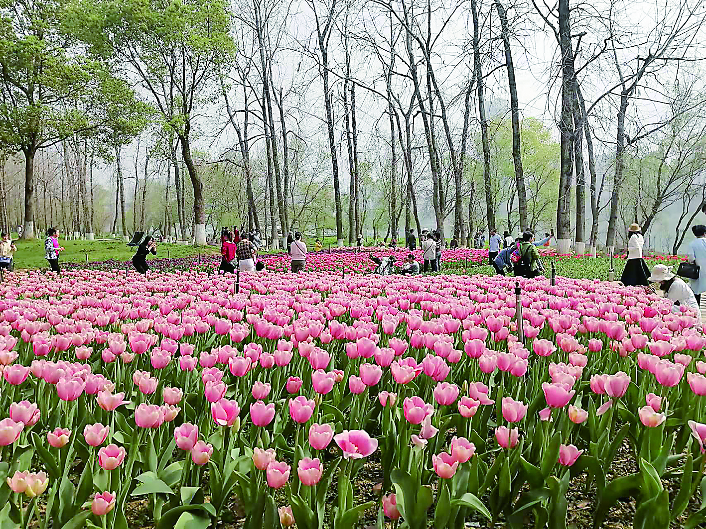 “相较于河东,河西的花海景观相对立体些。空中,以高大乔灌木所开花品为主,如樱花、梅花等;近地面,则以花阶为主,例如三色堇、石竹;而地面,则有二月兰、郁金香、波斯菊等。”市园林养护一所湘江风光带项目部相关负责人介绍。