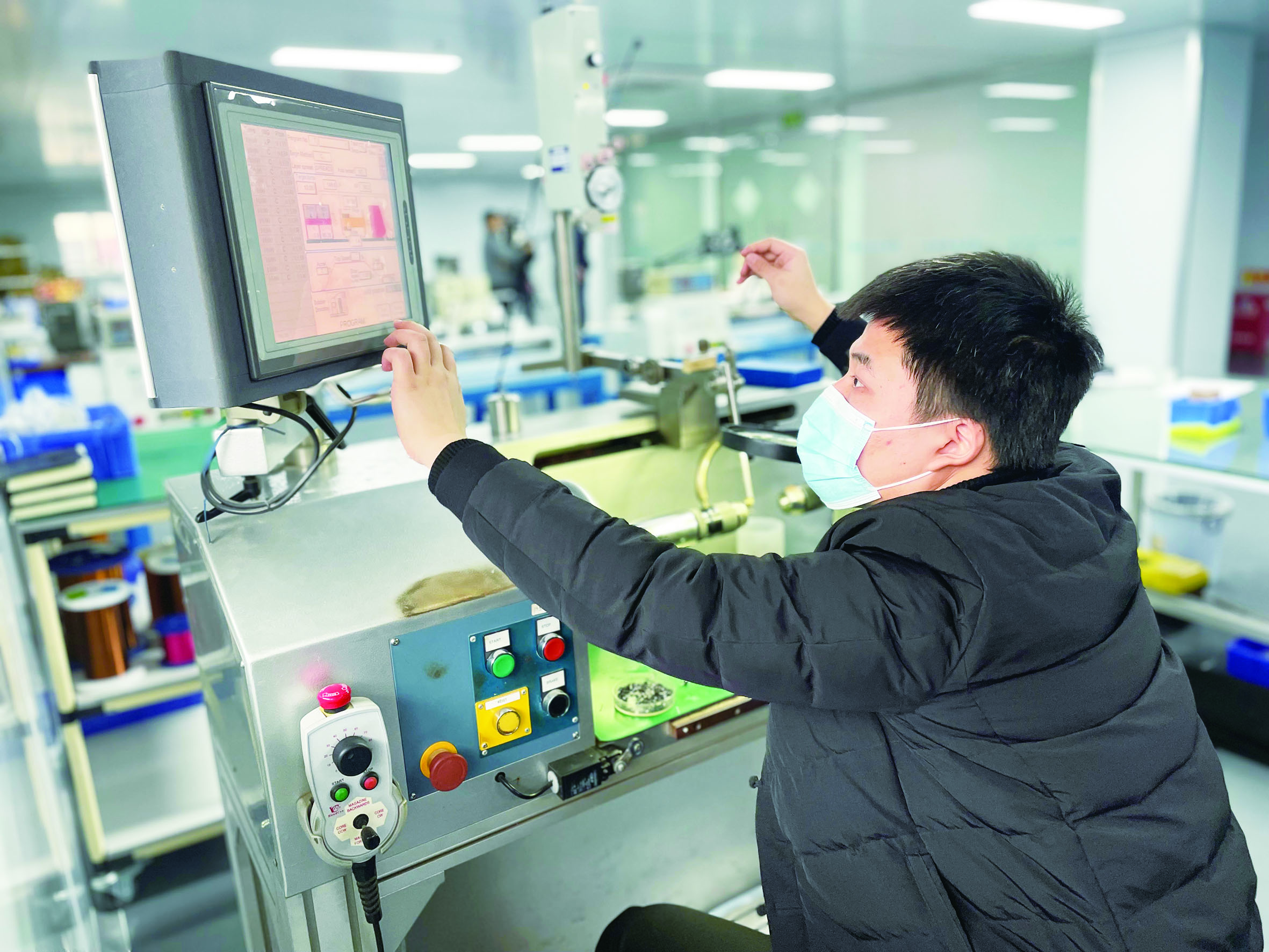 眼睛不时看上方的屏幕,左手在不同的按键上频繁操作,高抬着的右手里始终拿着一根细线,根据速度不断调整位置。近日,记者走进湖南泰维大石科技有限公司(以下简称泰维大石)的研发车间,只见仪器前的技术人员,个个专注忙着自己手头的活儿。