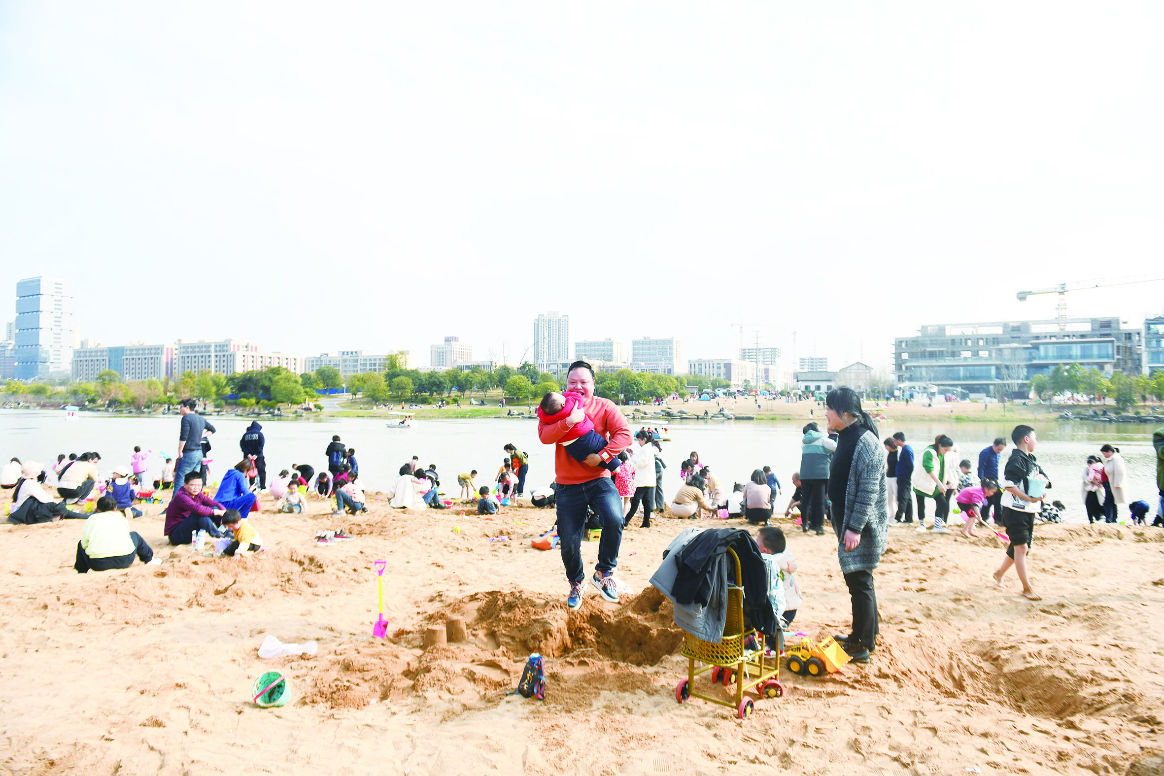 春暖花开,不少市民来到万丰湖戏水玩沙。 记者/谢慧 摄
